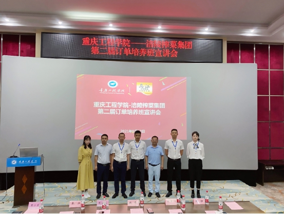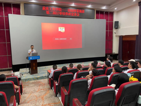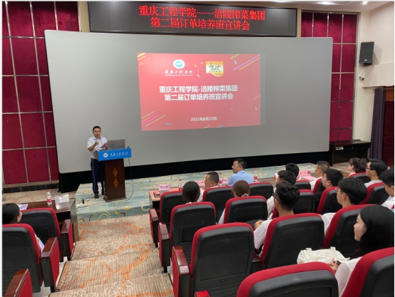 2021年9月22日下午13点30分,管理学院在阶梯报告厅举行了市场营销专业涪陵榨菜第二届订单培养班宣讲招聘会。重庆涪陵榨菜集团有限公司人力资源管理部经理戴季、销售管理部经理张庭川等一行出席了本次会议。管理学院书记刘达斌、工商管理系主任周小波、涪陵榨菜订单班班主任杜佳、18级市场营销专业辅导员赵慧慧以及2018级市场营销专业学生参加了本次宣讲会。会议由管理学院工商管理系主任周小波主持。