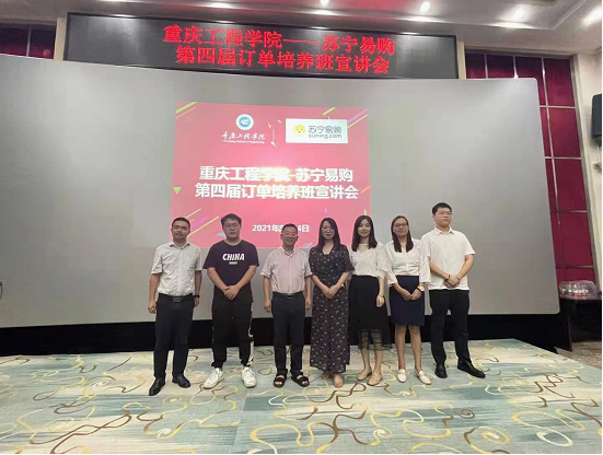 会上,周小波主任介绍了到场主要领导和合作背景。重庆工程学院管理学院书记刘达斌致辞,感谢公司领导对订单班的高度重视和对我院学生的培养和认可。刘书记提到近三年我院有114个同学有幸进入了苏宁易购实习、就业,公司给予了同学们专业化的培训和悉心指导,让同学们的各方面能力都得到了快速提升。很多同学在公司担任了核心岗位,我院希望与苏宁易购建立长效的发展机制、深化合作内容,实现学院、企业、学生的三方共赢。