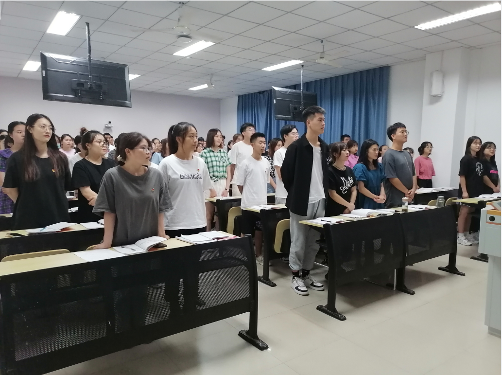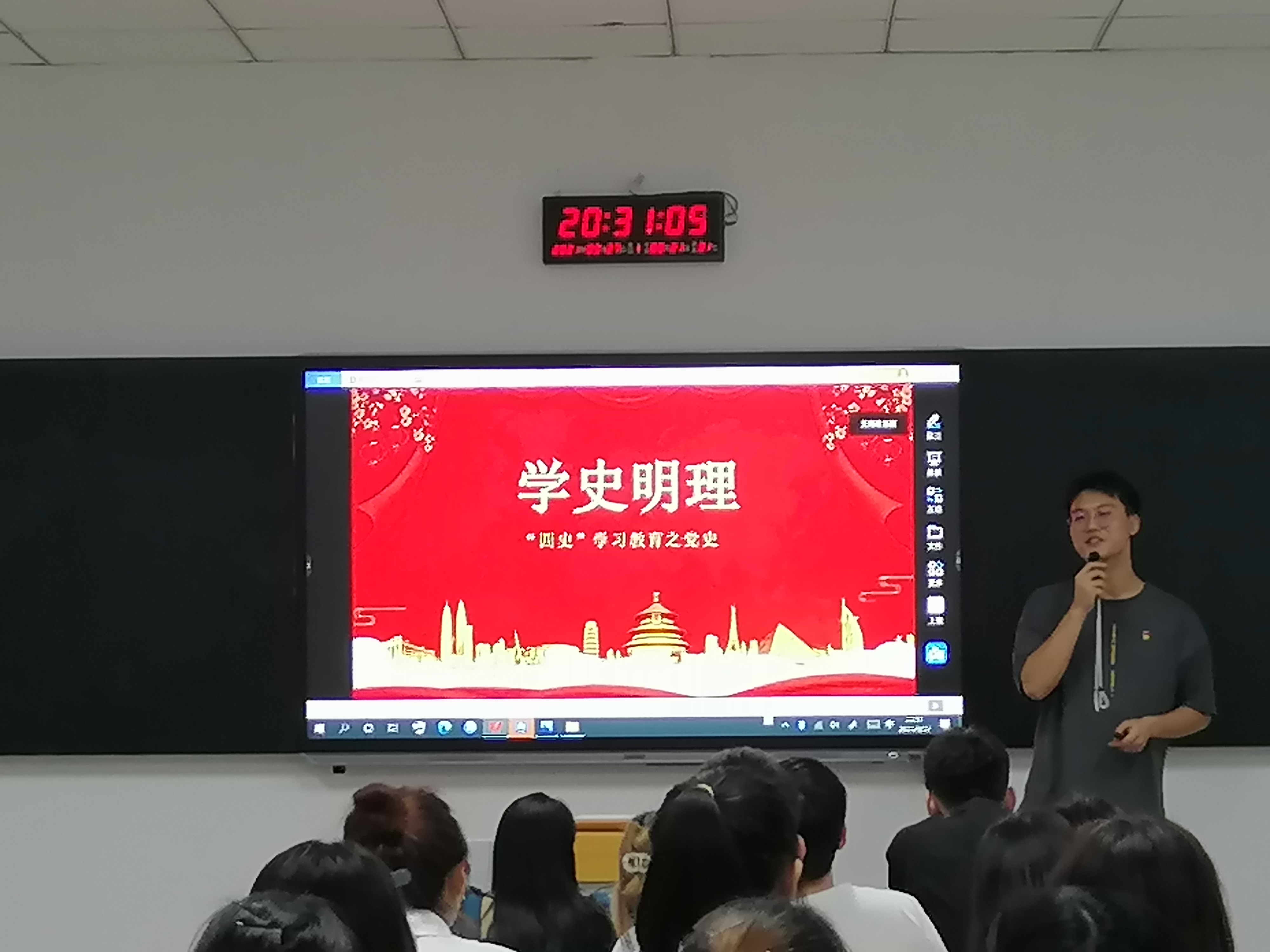 活动之初,黄小龙同志将党史分为几个节点为大家进行了宣讲,带领大家回顾了中国共产党从诞生到新中国成立再到十一届三中全会伟大转折等发展历程。然后,他寄语在以习近平同志为核心的党中央坚强领导下,全党同志一定要不忘初心、牢记使命,永远保持谦虚、谨慎、不骄、不躁的作风。接下来,丁月敏同志从“喜迎国庆”的主题出发介绍了国庆节、国旗、国徽以及国歌,同时立足国庆强调了干部应该廉政清白。新时代的大学生应该铭记历史,缅怀先烈,厚植爱国主义,赓续红色基因,同时应该以饱满的热情去迎接即将到来的国庆。最后,同学们踊跃地进行了实时热点分享。