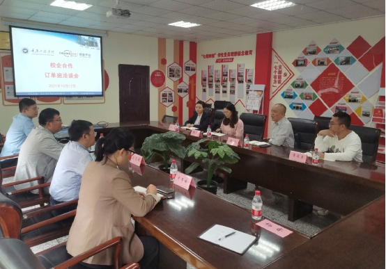 2021年10月12日上午10:00,重庆先特人事行政总经理黄诚一行应邀抵达重庆工程学院管理学院进行交流访问。管理学院书记刘达斌、科研副院长李英吉博士、电子商务系主任宋超、财务管理系主任史玉玲、订单班班主任杨睿等人热情接待了黄诚总经理一行,双方就校企合作事宜进行了深入交流。