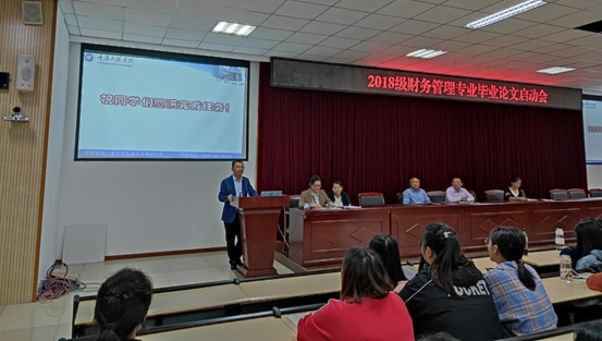 为了财务管理专业首次本科毕业论文相关工作能顺利开展,10月14日中午,会计系在6302教室举行了2018级毕业论文启动大会。会议由系主任史玉琳老师主持,管理学院院长彭建仿、书记刘达斌、教务科长朱凤,会计系全体教师以及2018级本科财务管理专业所有学生参加会议。