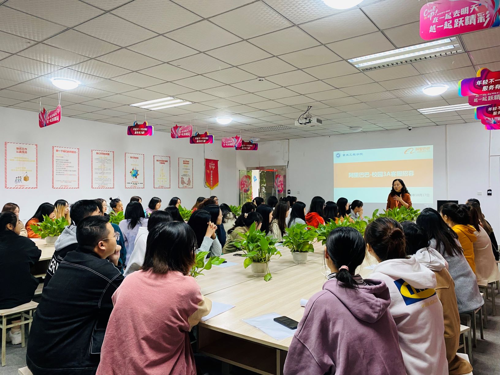 2021年10月17日上午10点,重庆工程学院阿里巴巴新零售人才孵化基地在实训楼303教室开展校园3A客服招募。参与本次招募的同学主要有管理学院市场营销专业19级和20级共50余名同学参与。招募会上,阿里巴巴新零售人才孵化基地3A项目主管段雄为同学们详细介绍了基地整体情况、3A项目的背景、工作内容及工作要求。同时阿里巴巴新零售人才孵化基地负责人曾霞就校企合作背景,客户服务行业发展,未来就业渠道等方面做了补充,希望同学们能够借3A项目的机会,丰富个人的实训经历,提升个人就业竞争力。