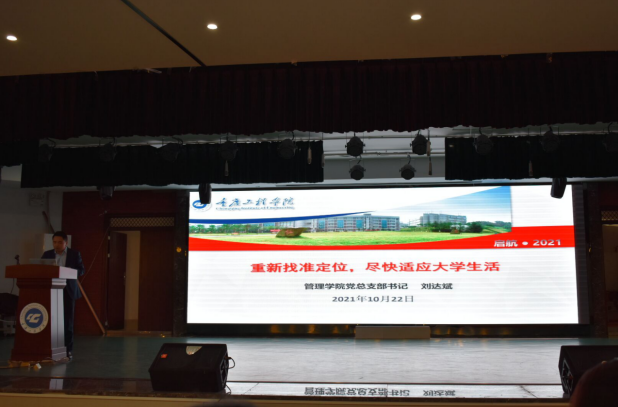 2021年10月22日下午,管理学院刘达斌书记、工商管理系主任周小老师,副主任郭英老师、电子商务系主任宋超老师、会计系副主任史玉琳老师一行5人前往重庆工程学院双桥校区,面向2021级工商管理类和电子商务类新生进行专业认知教育。