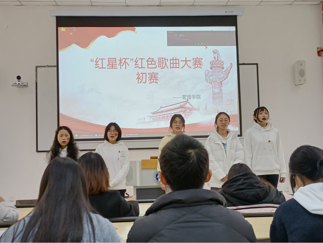 感悟初心使命,唱响红色歌曲。为缅怀先烈,激扬英雄精神,追寻红色记忆,管理学院学生党支部于2021年11月26日13:00在6202教室开展了以“缅怀革命先烈,追寻红色记忆”为主题的“红星杯”红色歌曲大赛初赛。此次活动由管理学院学生党员实践教育中心文化宣传部干事资兴星主持,共计50余人参加。