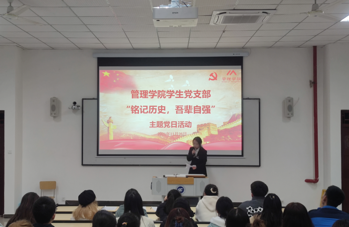 1949年11月27日,重庆解放在即,国民党反动派特务对重庆的革命者进行了大规模屠杀,在72年后的今天,为了让青年大学生缅怀革命先烈,追忆革命历史,传承红色文化,管理学院学生党支部于2021年11月26日18:00在第六教学楼204教室开展了“铭记历史,吾辈自强”主题党日活动。本次活动由管理学院学生党员实践教育中心教育培训部干事陈雨露主持,学生党支部80名同学参与其中。