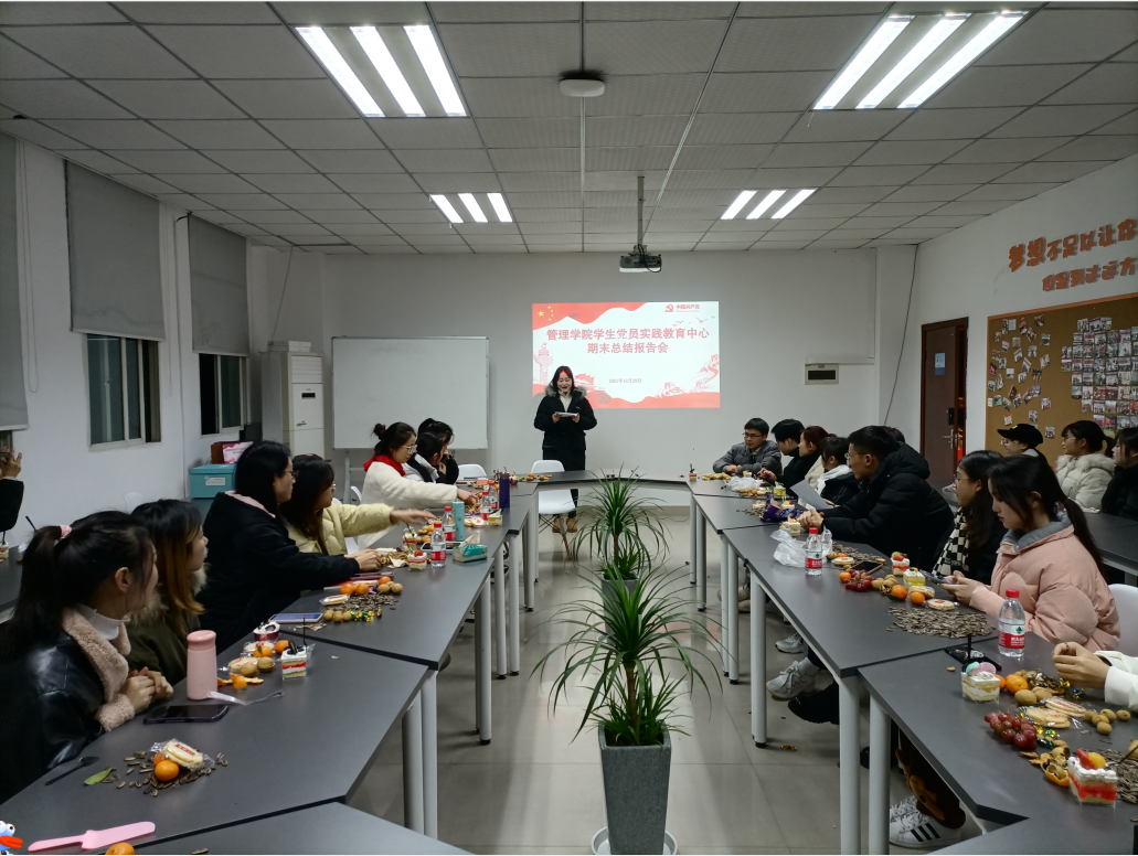 为展示与总结管理学院学生党员实践教育中心各部门工作,并对下一学期工作做出规划,提高工作效率,强化服务意识,管理学院学生党员实践教育中心于2021年12月29日18:00在实习楼304会议室开展了期末总结报告会。管理学院党总支书记刘达斌、专职组织员荣菁菁、学生第一党支部组织委员罗雪、学生第二党支部组织委员刘玲慧、学生第三党支部组织委员李亚、学生第四党支部组织委员吴孝平以及管理学院学生党员实践教育中心32名干部、干事参加了本次会议,会议由我院学生党员实践教育中心办公室干事钟天一主持。