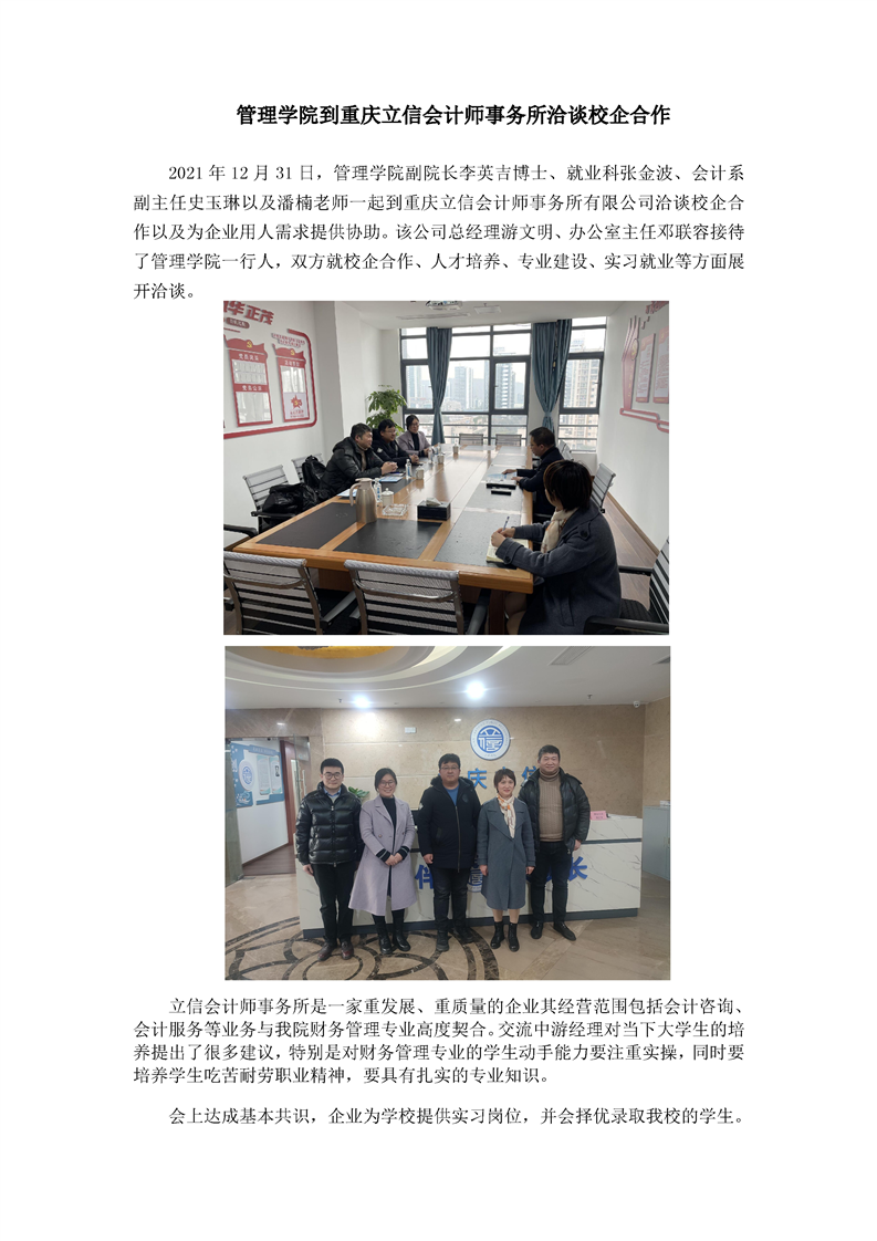 管理学院到重庆立信会计师事务所洽谈校企合作