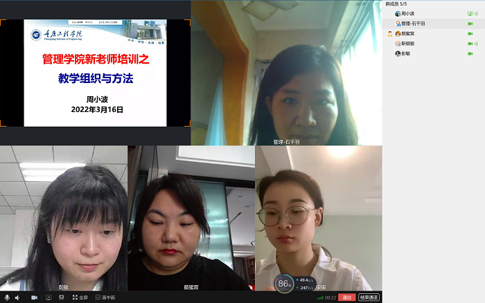 2022年3月16日,鉴于疫情防控需要,工商管理系主任周小波在线上开展了新教师培训,此次培训专题为教学组织与方法。