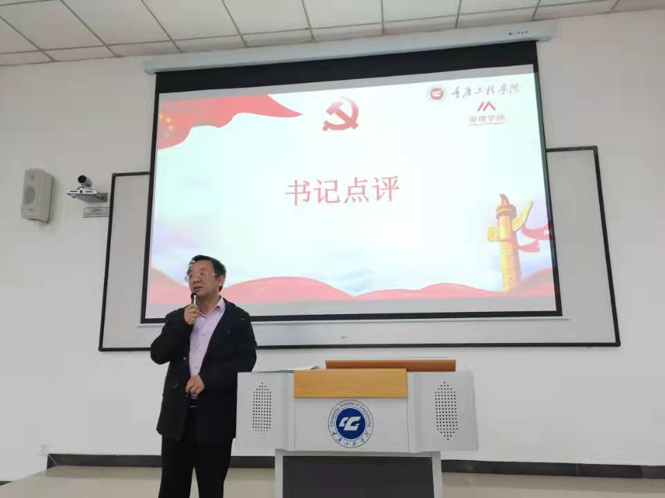 为深入学习十九届六中全会精神,以实际行动迎接党的二十大胜利召开,号召学生积极参与“我为评估作贡献”系列活动。2022年3月23日15:00,管理学院学生党支部在6204教室开展了学原著、讲党史、迎评估“大学生微党课”演讲比赛。学院党总支书记刘达斌、组织委员荣菁菁、宣传委员王燕楠、学院学生党员实践教育中心负责人冉露、学院团委学生会主席团成员丁月敏担任比赛评委。