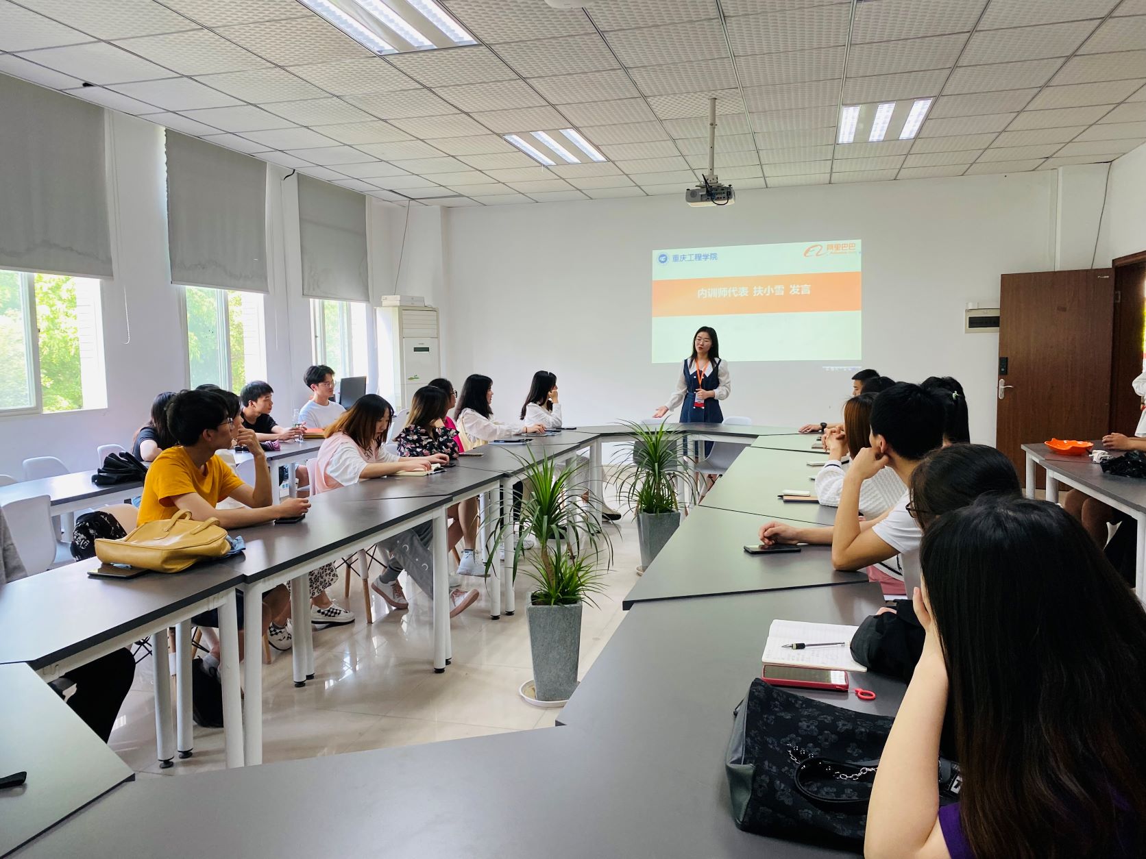 会议第三项由阿里基地负责人曾霞进行总结发言,并给同学们介绍了内训师在行业中的发展以及培训在团队管理中的重要性,同时给同学们未来的职业规划提出宝贵的建议!