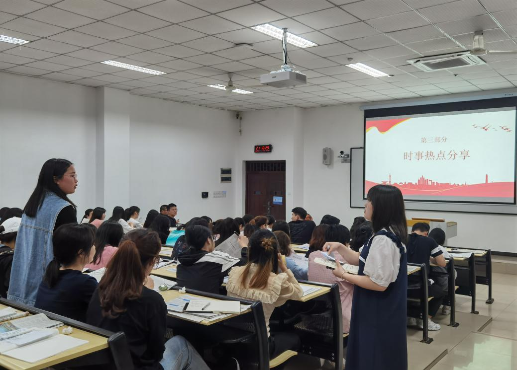 活动伊始,学生第三党支部的马承文同学以“致敬挺身而出的普通人”为题,围绕逆行者、人民英雄等关键词,讲述了挺身而出的普通人的故事。在火场中为营救被困群众而不幸英勇牺牲的消防员欧保尔、韦吉德,将青春的身影定格成了冲锋的姿态;在“8·12天津滨海新区爆炸事故”中无一人活着回来的天津港消防支队五大队,将他们的生命定格在了漫天火光中。还有永不坠落的扶贫志吴国良、冲锋陷阵的“瘦弱将军”肖云峰、“一封群众的请愿书”高克强......他们在平凡的岗位上铸就了生命的精彩华章,擦亮了道德星空,树起了时代标杆,挺直了民族脊梁。时政热点分享环节,同学们各抒己见,积极参与到讨论当中。跪地做心肺复苏连救3人的重庆女医生,让同学们感受到了英雄不过是普通人的挺身而出。“动态清零”总方针,让同学们明白了疫情形势依然严峻复杂,遵守防疫抗疫要求是每一个人的义务与责任。