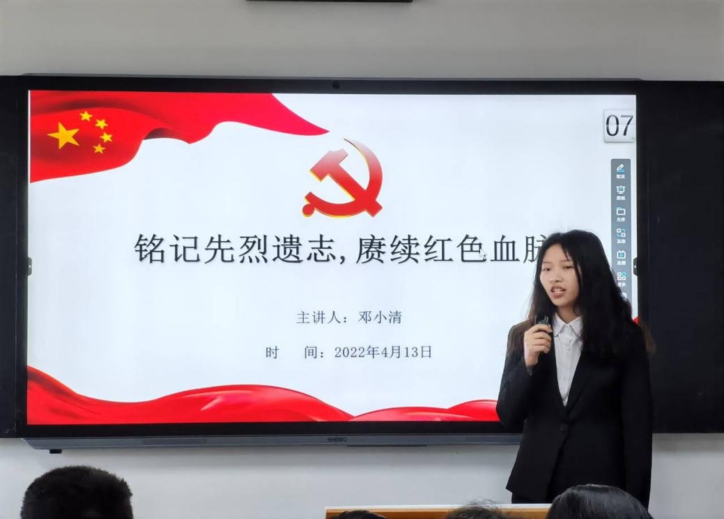 又是一年清明时,春风落雨寄相思。为了纪念逝去的故人,以更深切的思念缅怀英雄先烈,致敬英烈精神,2022年4月13日7:20,管理学院四个学生党支部在第六教学楼开展了“大学生微党课”进班级活动。8名2019级学生预备党员走进晨课教室,向2020级同学们进行了“铭记先烈遗志,赓续红色血脉”主题宣讲。