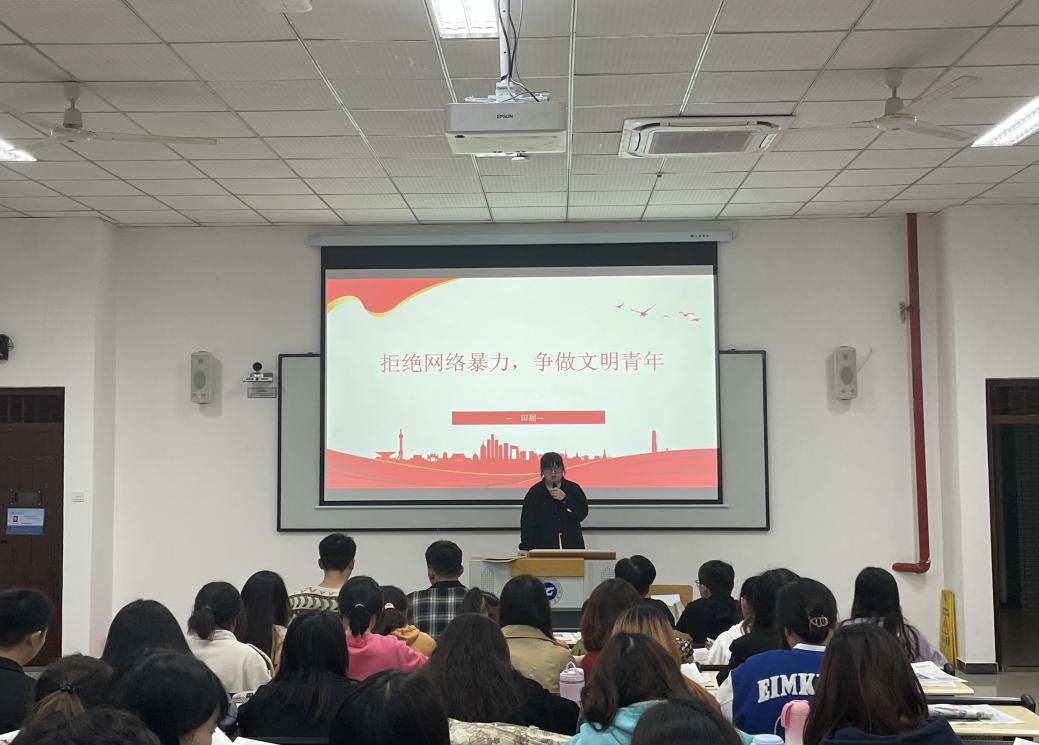 网络暴力是一场没有鲜血却漫无止境的屠杀。为抵制谣言,拒绝网络暴力,做一名文明有礼的新青年,2022年4月18日20:30,管理学院四个学生党支部在6204教室开展了“拒绝网络暴力,争做文明青年”主题活动。本次活动由管理学院学生党员实践教育中心办公室干事田甜主持,学院四个学生党支部共计80余名同学参加。