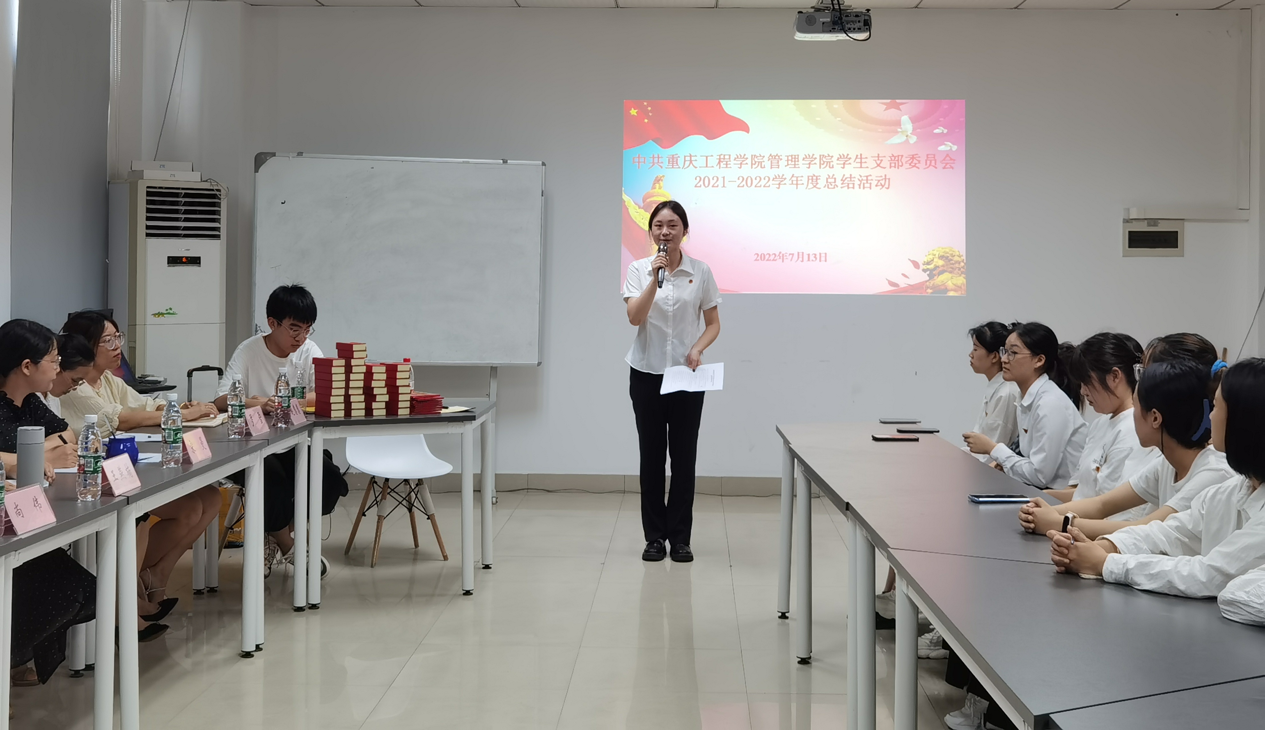 为进一步增强管理学院学生党支部的沟通与交流,提升党组织的向心力、凝聚力,充分展现团队良好的精神风貌,同时为更好地总结工作、谋划未来,管理学院四个学生党支部于2022年7月13日在3304会议室开展2021-2022学年度总结活动。党总支副书记尚伟、专职组织员荣菁菁、各学生支部书记、组织委员,以及院学生党员实践教育中心32名成员参加了本次活动,活动由学生干部钟天一主持。