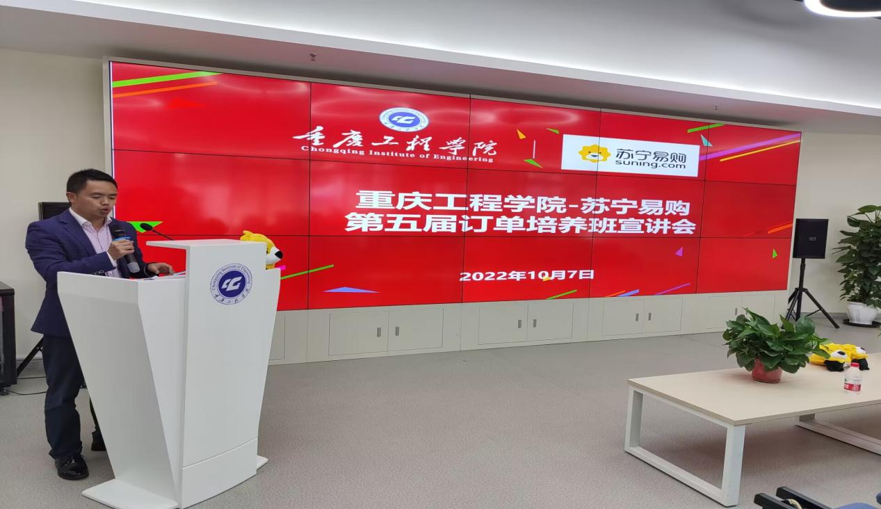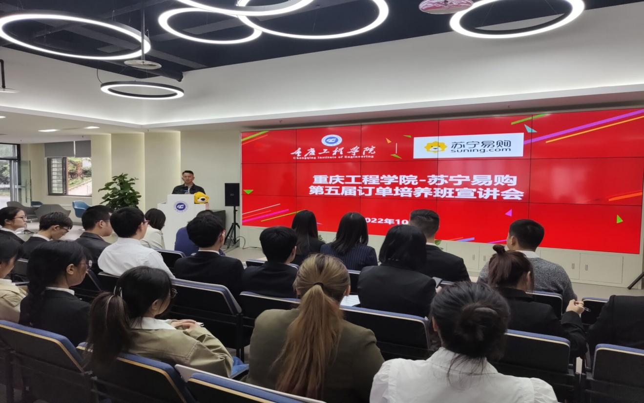(文/图 数字营销系 周小波)2022年10月7日,管理学院在创新创业园路演大厅举行了市场营销专业苏宁易购第五届订单班宣讲招聘会。苏宁重庆地区管理中心人力资源总监黄润、人力资源经理何菊华一行到校进行宣讲及面试。管理学院院长简玉刚、订单班班主任杨仕梅、2019级本科市场营销专业学生及辅导员宋曼参加了此次宣讲会,会议由数字营销系主任周小波主持。