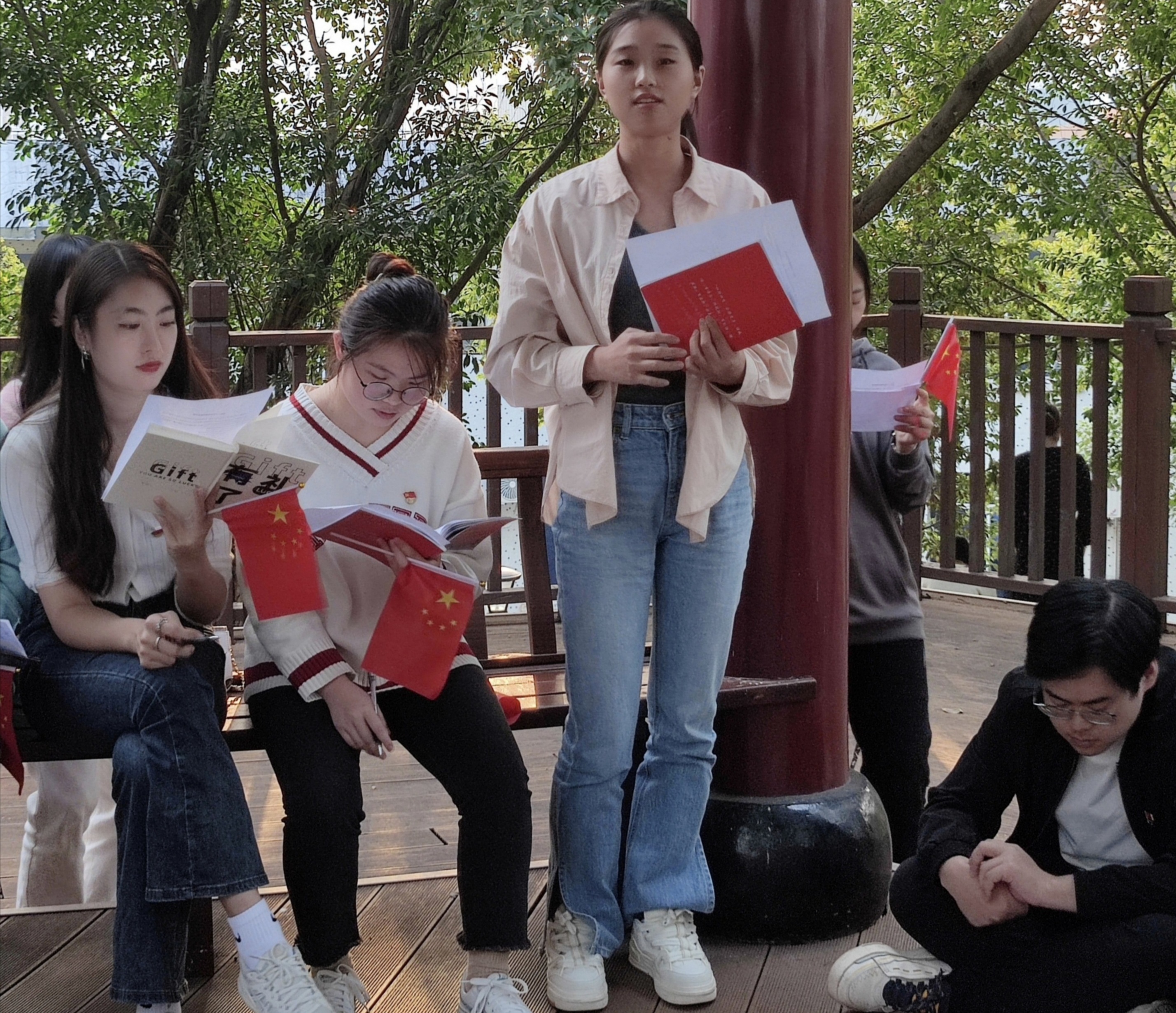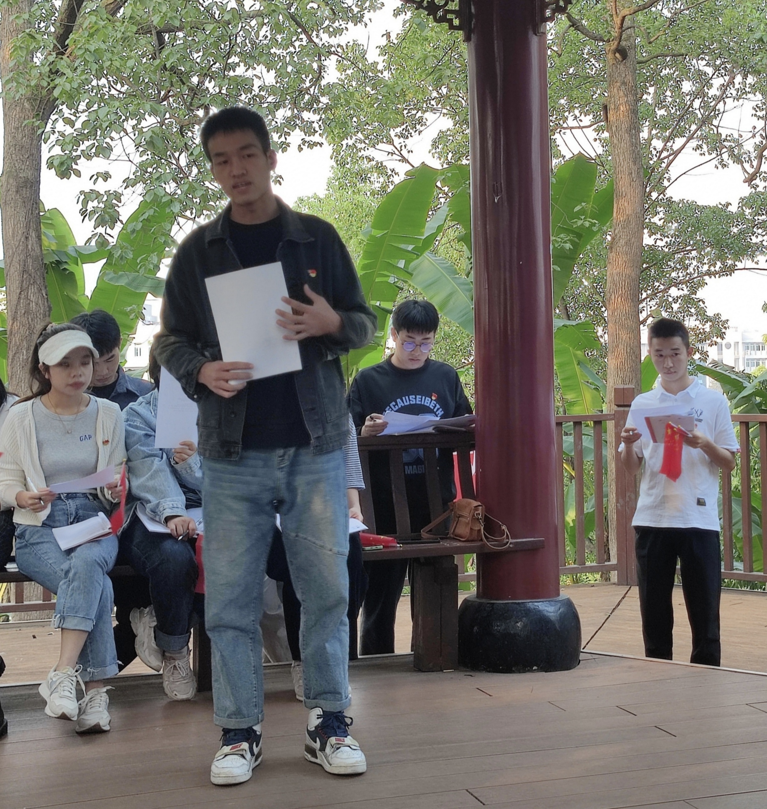 (文/图 学生第二党支部 李洲莲)10月22日,中国共产党第二十次全国代表大会胜利闭幕。为深入学习贯彻党的二十大会议精神,管理学院学生第二党支部于10月22日16:30在第一教学楼室外亭子处开展了“薪火青年说”第八期“学习党的二十大报告精神 坚定理想信念”主题党日活动。管理学院学生第二党支部书记曾艳灵、学生第四党支部书记罗雪及38名学生党员参与了此次活动。