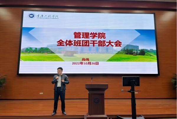 会上管理学院尚伟书记向全体班团干部明确了学生干部的定义、定位、应具备的能力以及从哪些方面开展工作,从而形成积极向上的班级文化,会议上强调了构建优秀班级文化建设的重要性,指出“红蓝绿”文化建设需要继续推进下去,这也就需要班团干部尽心尽力的配合工作,努力打造属于“青春管院”的风尚。尚伟书记在会上表示班团学生干部是班级核心,需要尽心尽力为同学们服务,不能有阶级思想,希望各班团干部带领班级同学积极投身于学校教学合格评估工作中,并号召干部在学习生活中发挥模范带头作用。