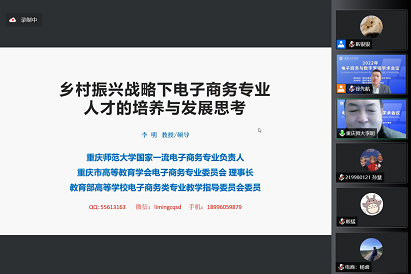 2022年12月7日,为促进重庆地区电子商务与数字营销领域学者间的沟通、交流与合作,在重庆市高等教育学会电子商务专委会指导下,重庆工程学院主办的“2022年电子商务与数字营销学术会议”通过腾讯会议在线上举行,重庆市高等教育学会电子商务专委会部分成员、市内高校师生代表共计500余人参加了会议。