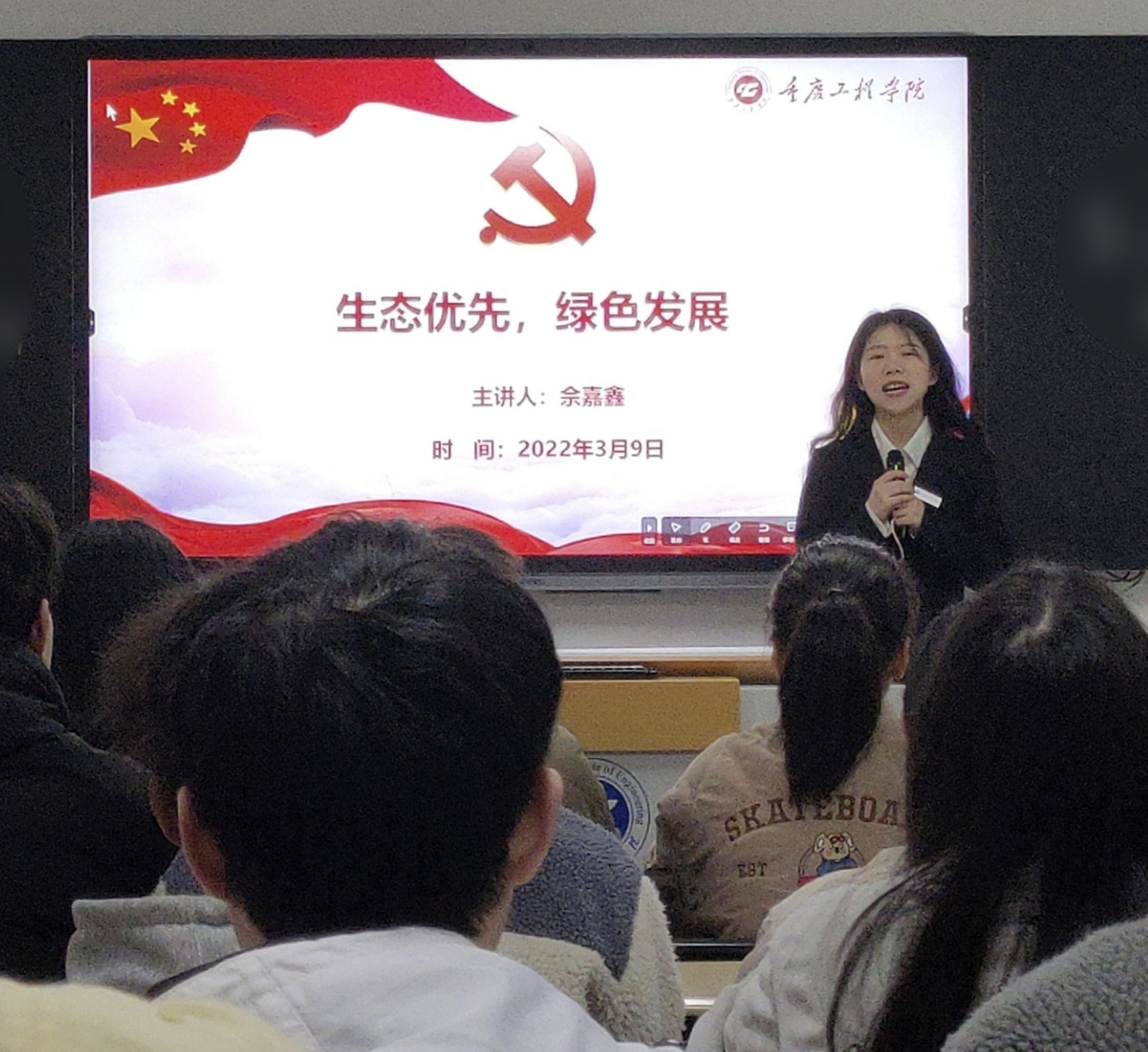 (文/图 学生党教中心 黄俊斐)为深入贯彻绿色发展理念,推动生态文明志愿服务,管理学院党总支于3月9日在第六教学楼开展了“大学生微党课”进班级活动。9名学生预备党员走进晨课教室,向2021级同学们进行了“助力生态行动,造福中华民族——保护母亲河日”主题宣讲。