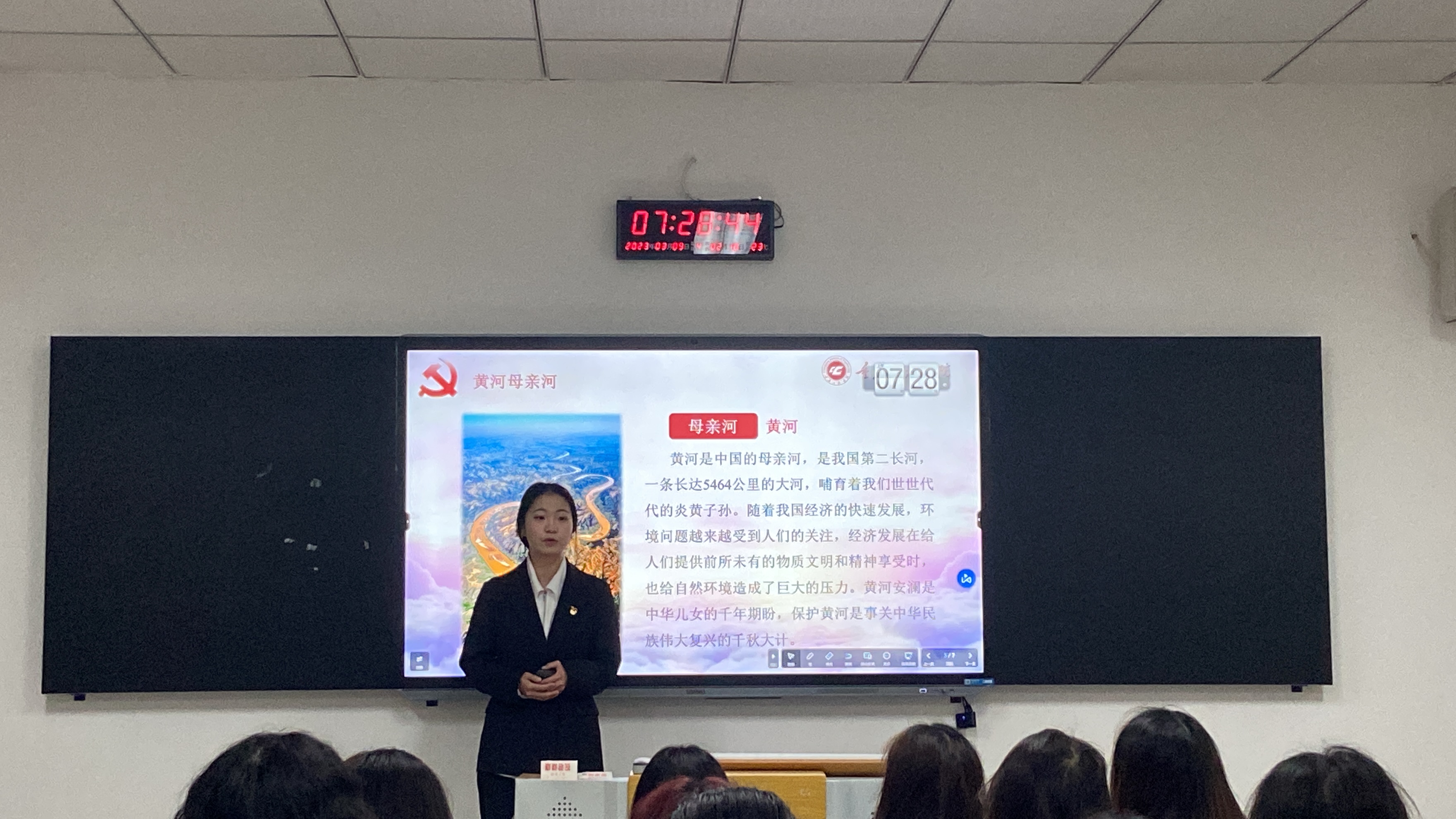 伴随着铃声,学生预备党员们怀着饱满的热情走进晨课教室,向2021级同学们讲述“保护母亲河日”的起源、背景和相关故事。其中,张雯同学向同学们讲述了樊海峰先生带领他的团队,与临州志愿者一起开展保护黄河行动,向沿岸群众宣传环保理念,为国家生态环境建设作出贡献的事迹。廖莉同学在宣讲中鼓舞同学们一起做保护母亲河行动的宣传者、参与者与监督者,共同为保护母亲河作出贡献。同学们积极响应,表示自己将在生活中付诸实践,积极参与保护环境的志愿服务活动,从身边的小事做起,践行绿色低碳的生活方式。