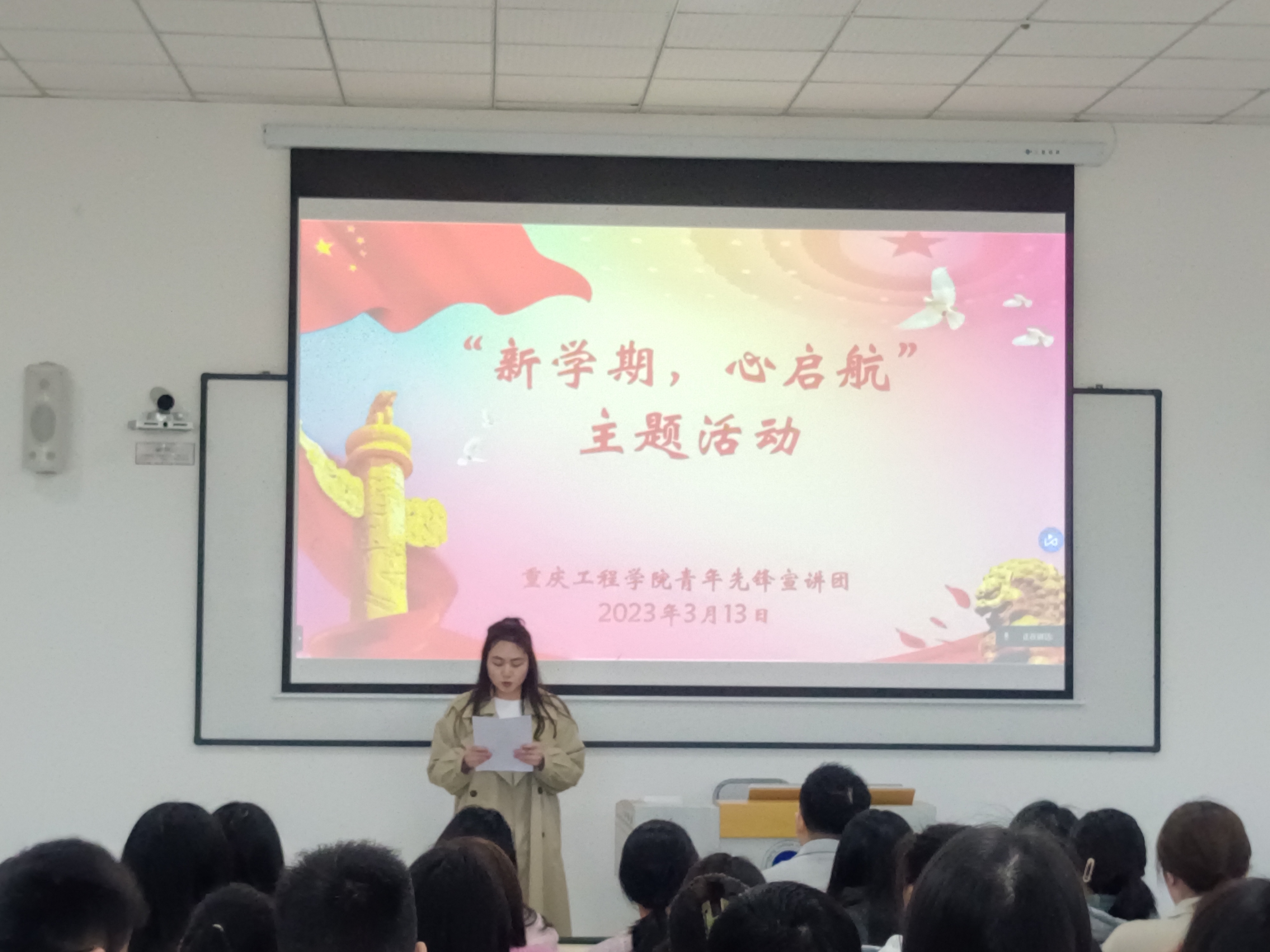 (文/图 学生党教中心 何金桧)为加强师生交流,进一步帮助和促进广大青年大学生践行服务使命、履行社会责任,重庆工程学院青年先锋宣讲团于3月13日在第六教学楼开展了“新学期,心启航”主题活动。参加本次活动的有管理学院党总支书记、社团指导老师尚伟,管理学院党总支组织委员、社团指导老师荣菁菁以及青年先锋宣讲团全体成员。本次活动由青年先锋宣讲团成员李鑫怡主持。