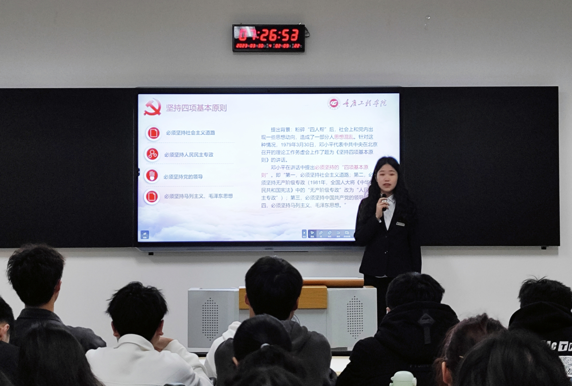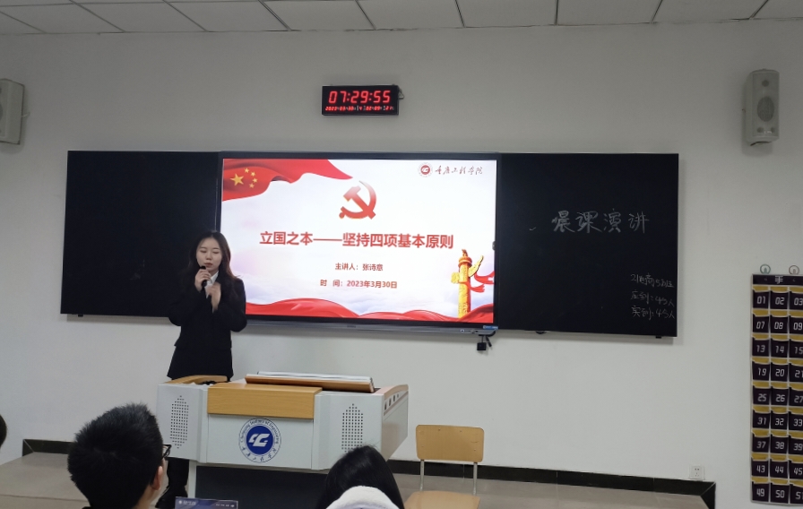 (文/图 学生党教中心 邹学微)为进一步夯实信仰力量,不断丰富理论滋养,提升青年学生的党史理论知识储备,管理学院党总支于3月30日在第六教学楼开展了“大学生微党课”进班级活动。9名学生预备党员走进晨课教室,向2021级同学们进行“立国之本——坚持四项基本原则”主题宣讲。