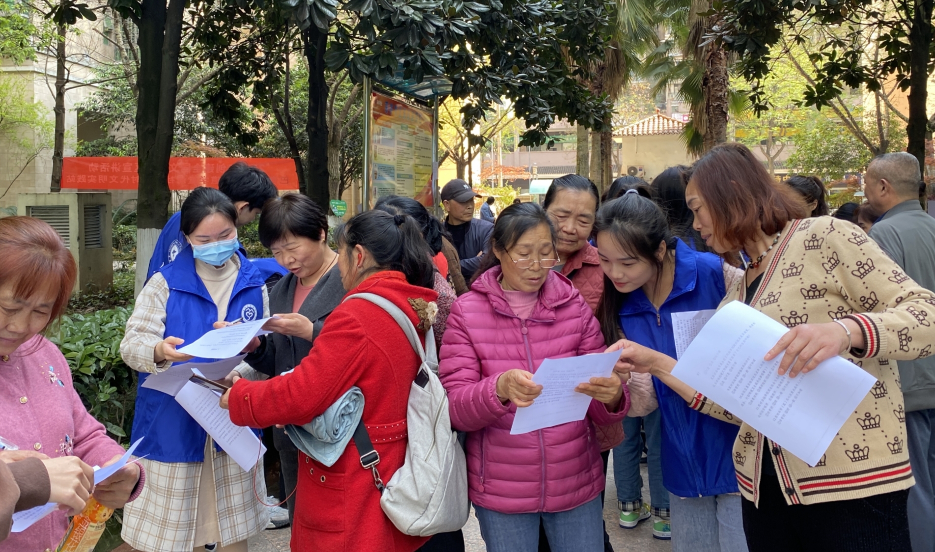 活动伊始,陈雨露同学面向社区居民进行宣讲。她分别从如何防止诈骗和建立良好交通秩序两方面进行讲解,提醒社区居民要保护好自身财产安全,不要贪图便宜,同时在外出行要遵守交通规则,做出行文明人。随后刘义莲同学围绕文明素质展开宣讲,鼓励居民们从身边小事做起,在点点滴滴中提升文明素质,共同为创建文明城市贡献力量。宣讲结束,学生志愿者们还对居民们进行了问卷调查,了解大家对创文的意见建议。