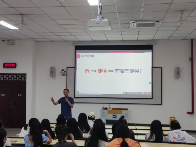 5月23日,管理学院在6204举办职业生涯之“弯道超车”主题讲座。