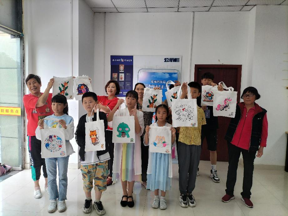 活动伊始,志愿者们面向居民朋友进行了“绿色环保润童心”的主题宣讲,引导大家树立环保意识,让环保知识、生态文明的理念走进家庭,营造人人关心环保、人人参与环保的良好氛围。随后,进行了DIY活动。志愿者们按照步骤进行教学,引导大家调色、填色。家长也在一旁鼓励孩子,现场氛围活跃,充满爱意。六月繁花似锦,美好的景色和事物接踵而至,当奇妙和创意遇上环保,当欢乐和亲情遇上陪伴,原本简简单单的白色帆布袋在小朋友的创作下变成了一件件独一无二的珍藏品。一名参与活动的妈妈拿着画好的帆布袋开心地说:“这个帆布袋是我和女儿一起完成的,很有纪念意义,以后出去买东西就背它了!”