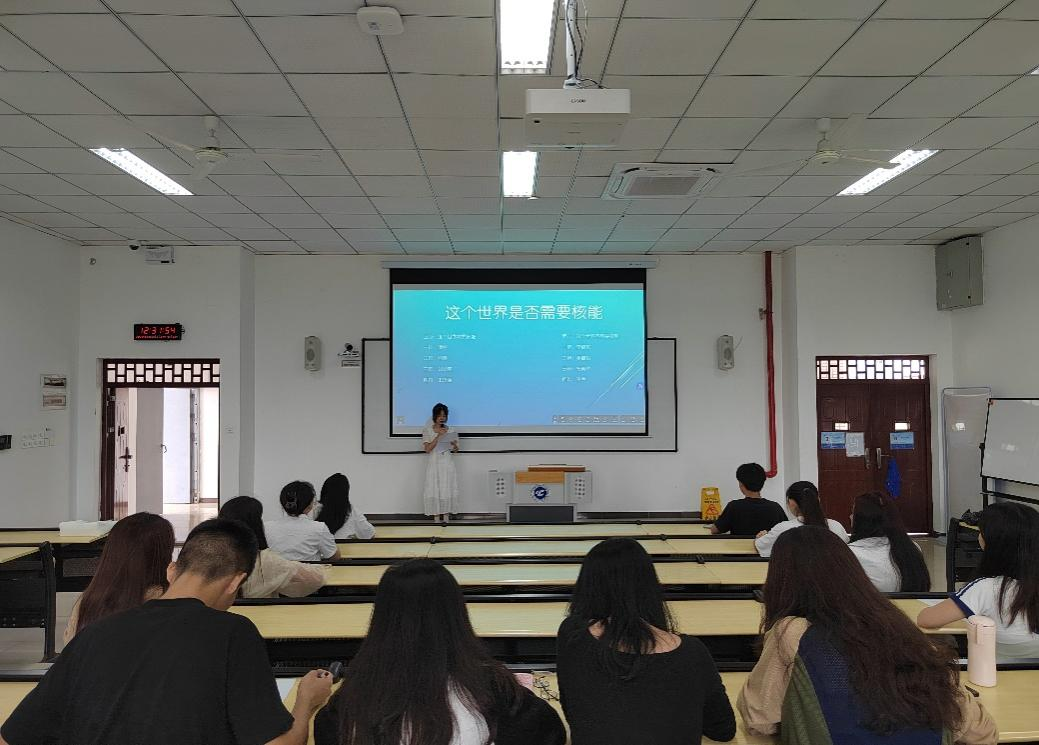 随着经济的发展,能源与环境问题日益突出。此次辩论赛的主题为“这个世界是否需要核能”,正方观点为:这个世界需要核能,反方观点为:这个世界不需要核能。辩论赛开始,双方一辩运用理论引出自己的观点,并结合典型事例进行分析概括,为本场辩论进行开篇立论,而后双方选手就辩题展开深层次的辩论。双方辩手雄辩滔滔,妙语连珠,或慷慨陈词、高声吟哦,或抽丝剥茧、娓娓道来,或斩钉截铁、口若悬河。双方论据有全球能源报告点缀、化学知识衬托。他们清晰的逻辑、有力的论证,将此次辩论赛推向高潮。台下同学凝神聆听,掌声不断。辩论赛最后,根据评委打分和观众投票,选出反方为胜出队伍。
