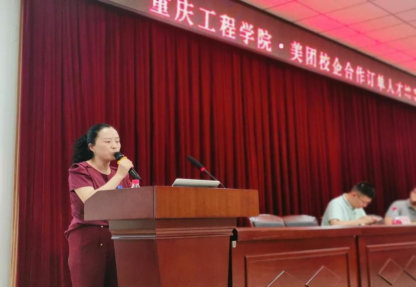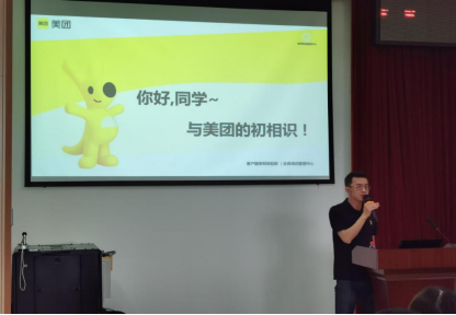 随后,美团校企合作商务总监任剑锋以“你好同学—与美团的初相识”为主题,从走进美团、客服岗位介绍、美团实习收获三个方面切入,向同学们进行宣讲。美团成立至今,基本实现服务全覆盖,并且顺应时代潮流推出“零售+科技”新理念,不断打造从需求侧到供给侧的多层次服务平台,逐渐成为美好生活的小帮手。任总监对此次与重庆工程学院的合作表示期待,同时也希望同学们后续能够在美团实习过程中不断培养沟通力、服务力、解决力、高效力和情绪力,全面提高自身综合能力。