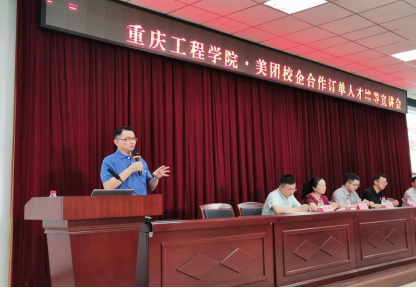 (文/图 管理学院 卫莉)为加速学校产教融合工作、推动打造应用型办学特色,管理学院于6月14日在第六教学楼报告厅召开“重庆工程学院•美团校企合作订单人才培养”宣讲会。美团校企合作商务总监任剑锋,管理学院院长简玉刚、党总支书记尚伟、副院长徐先航,重工互联网运营人才孵化基地负责人曾霞以及学院相关领导和20级电子商务、市场营销、人力资源专业全体学生参加了此次宣讲会。
