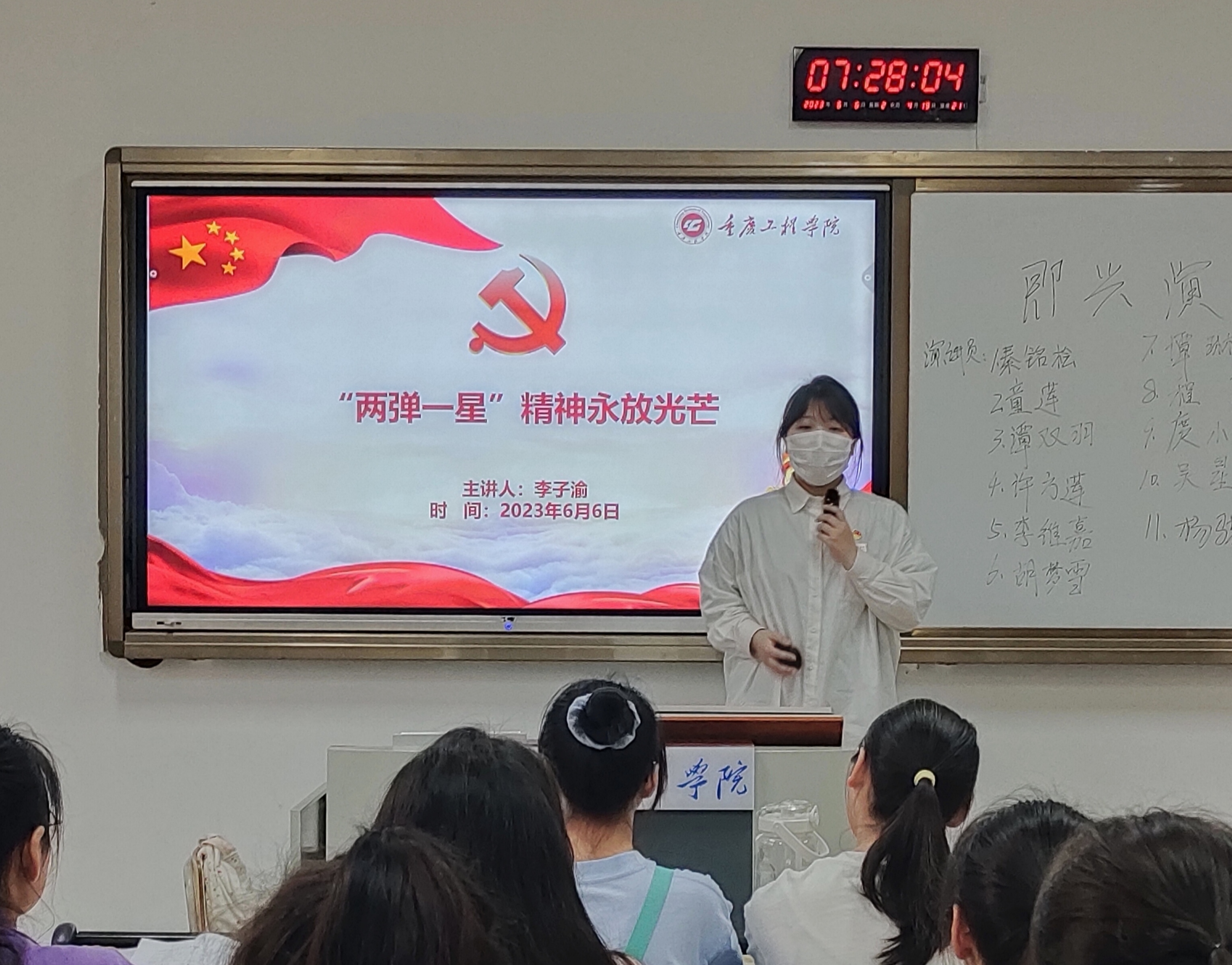(文/图 学生党教中心 张丽梅)为进一步鼓励同学们发扬不屈不挠、敢为人先的奋斗精神,凝聚中华民族伟大复兴磅礴伟力,重庆工程学院青年先锋志愿宣讲团于6月6日在第六教学楼开展“大学生微党课”进班级活动。9名学生预备党员走进晨课教室,向2021级同学们进行“弘扬‘两弹一星’精神,凝聚砥砺奋进力量”主题宣讲。