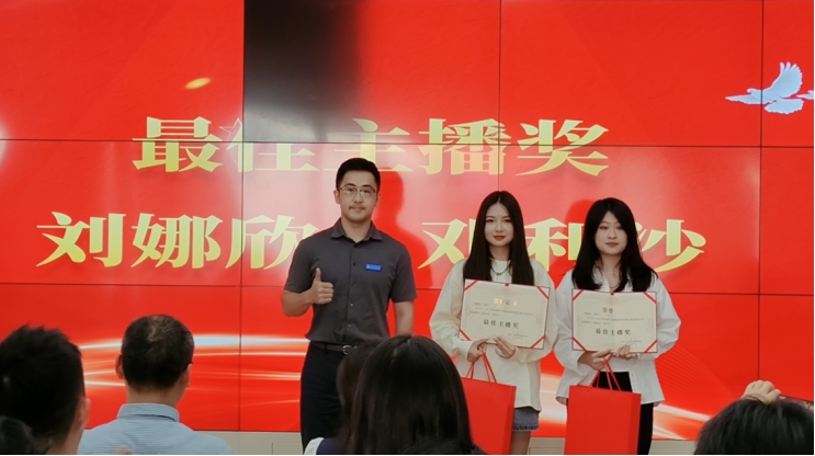 颁奖结束后,谢涛同学作为获奖代表分享了他在暑期直播实践中的收获和感悟。同时,杨双燕董事长和尚伟书记分别给精英班的其他提出了期望和要求。杨董事希望同学们要理论联系实践,要善于从实践中总结经验才能不断进步,要求大家坚持学习、不断积累、不要急躁、获得结果。尚书记对大家的实训结果进行了总结和鼓励,并希望同学们真的在实践中“受教育、长才干、做贡献”,都能做到“敢想、能想,会想”,勇于创新,敢于尝试。真正在实践中锤炼本领、检验知识、收获成长。