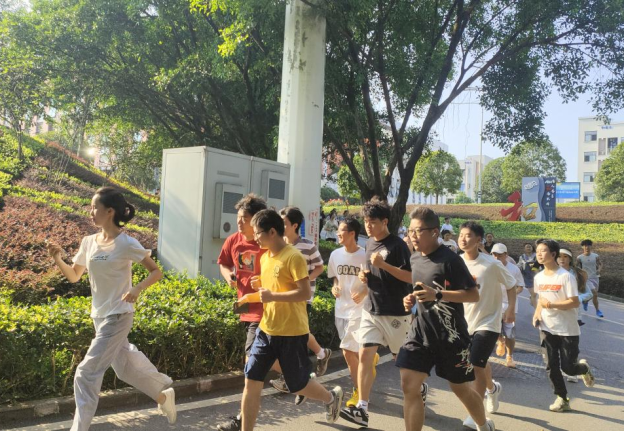 活动全程大约2.5km由足球场到二食堂,到沿容园3号到大学生服务中心,再到彭氏民居沿公路跑至行政楼,图书馆二部,第四教学楼,职工之家,第六教学楼,原路返回,每个同学在本次主题跑中都向我们展示了最坚韧不拔的精神,即使天气炎热,全程较长,且路面有起伏,但每个同学都坚持下来,没有一个同学中途放弃。