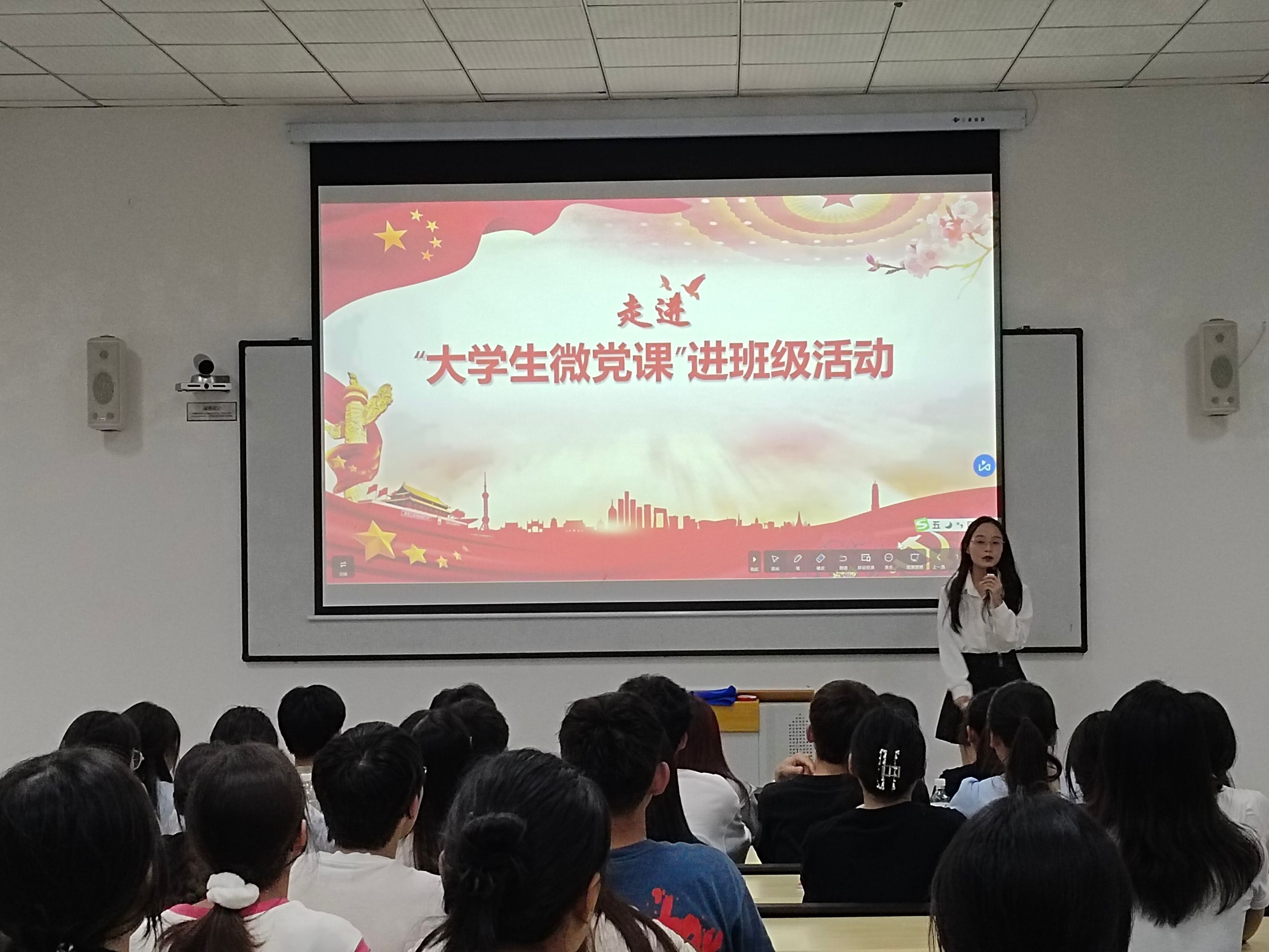 “知之深则行愈达”。活动伊始,主持人向大家介绍了“七培四创”大学生党员理想信念教育的内容,并向同学们提出了“理论+实践”的学习要求与建议,激励同学们在接受精神与行动的教育过程中,将党的思想内化于心、外化于行。紧接着,漆棋同学讲解了关于“大学生微党课”进班级活动的各类注意事项,并重点强调了稿子及着装的细节与要求,期许在未来的“大学生微党课”进班级活动中与大家一起成长进步。