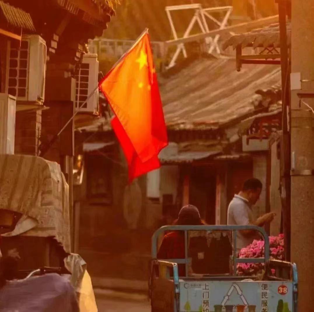 作品寓意:国旗在夕阳的映衬下变得更加耀眼夺目,寓意着国家会变得更加繁荣昌盛,人民更加幸福快乐。