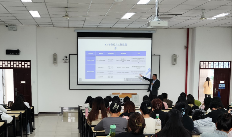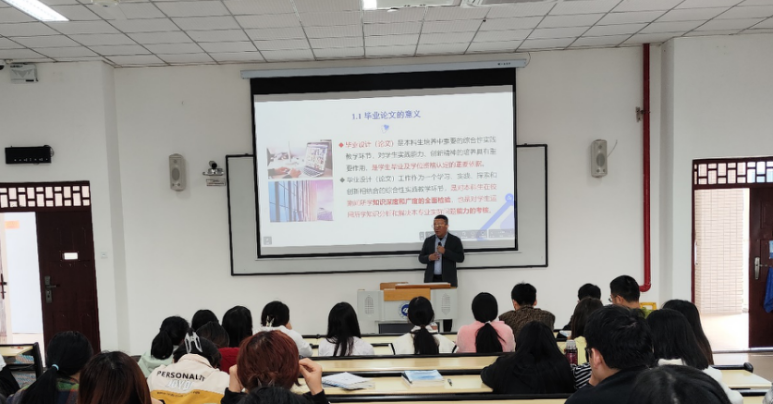 毕业论文开题启动会作为毕业论文工作的一个重要环节,体现了学院、系部对学生毕业论文工作的重视和支持。王博士不仅阐述了论文撰写要点、开题报告的重难点、文献检索技巧,以及相关注意事项,还强调了独立思考和创新的重要性,他鼓励同学们在选题时遵循自己的兴趣,把毕业论文当作一次深入探索专业知识的机会。