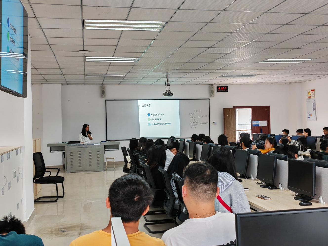 会议初始,郭英主任针对毕业论文的重要性和具体内容撰写,做了专题讲解。讲解的具体内容包括论文选题的确定、文献的收集、研究方法的选择和运用等。她指出选题研究要具体,切忌假大空,并且难度应与同学们理论掌握情况相适应;关于开题,郭英主任提示同学们要注重论文的基础设计,同时善于运用检索工具,合理论用学校提供的资源,梳理论文基本逻辑;在写作上,郭主任将常见的实践型、实证型论文的逻辑结构都对同学们进行了讲解。除此以外,郭主任还严格要求全体毕业生要高度重视学术论文的严肃性与严谨性,杜绝弄虚作假、剽窃抄袭等一切学术造假的行为。最后为同学们公布了本次2023届人力资源管理专业毕业论文指导教师,提醒同学们时刻保持与指导老师的密切联系,做好毕业论文最后一个环节,高质量完成毕业论文!