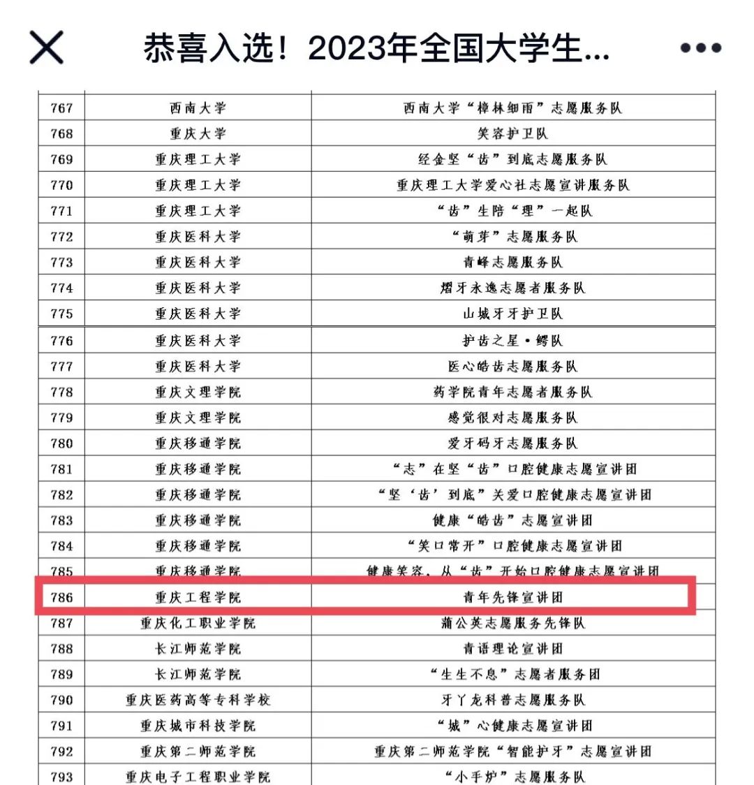 10月20日,2023年全国大学生口腔健康志愿宣讲团入选团队名单公布,重庆工程学院青年先锋宣讲团成功入选。