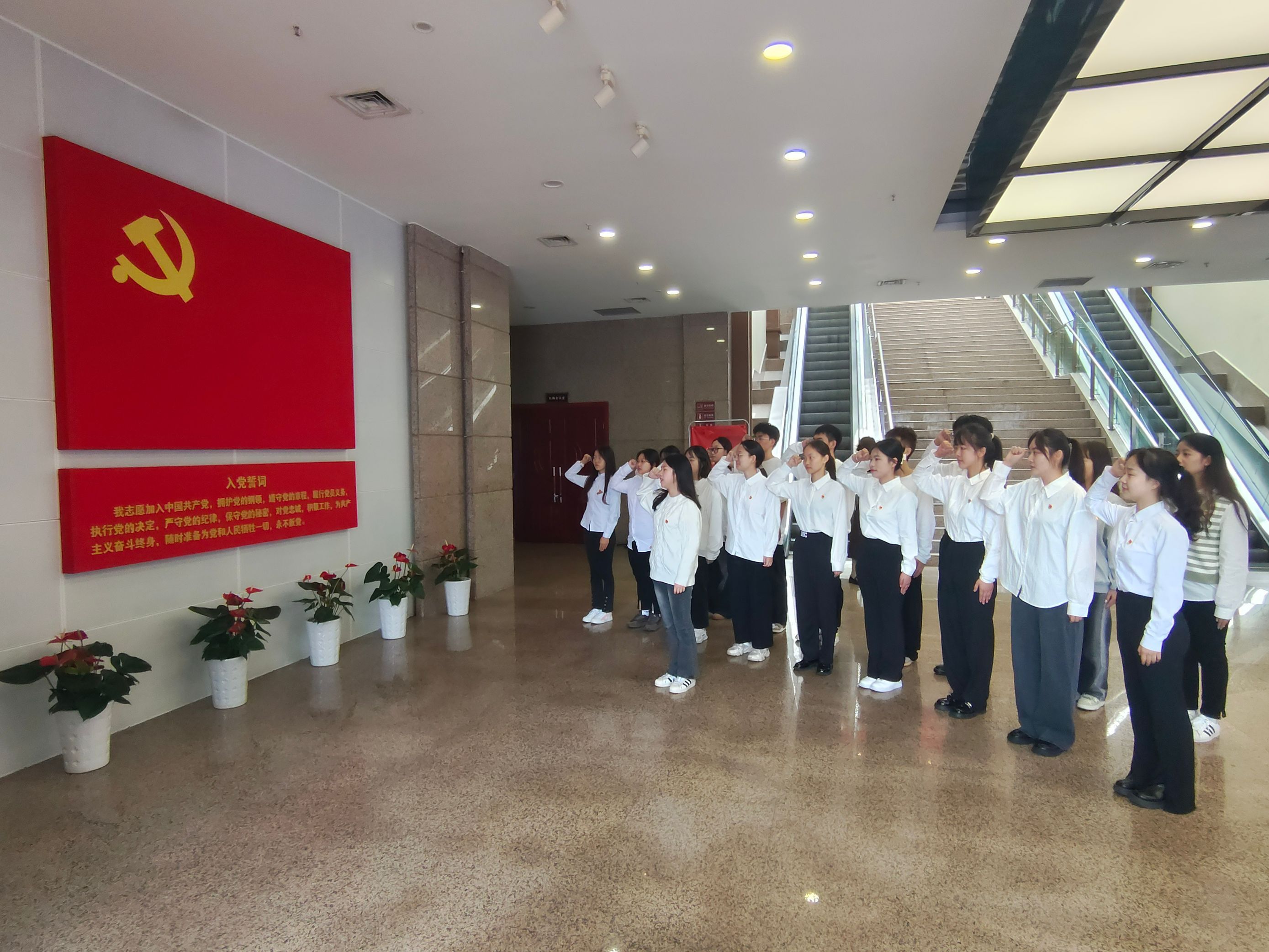 参观结束,学生预备党员们进行了入党宣誓。铮铮誓词久久回荡,红岩精神历久弥坚。“我志愿加入中国共产党,拥护党的纲领,遵守党的章程,履行党员义务……”面向鲜红的党旗,学生预备党员们高举右拳庄严宣誓,那一声声铿锵有力的誓言彰显着对党的深厚感情和为党的事业奋斗终身的决心。