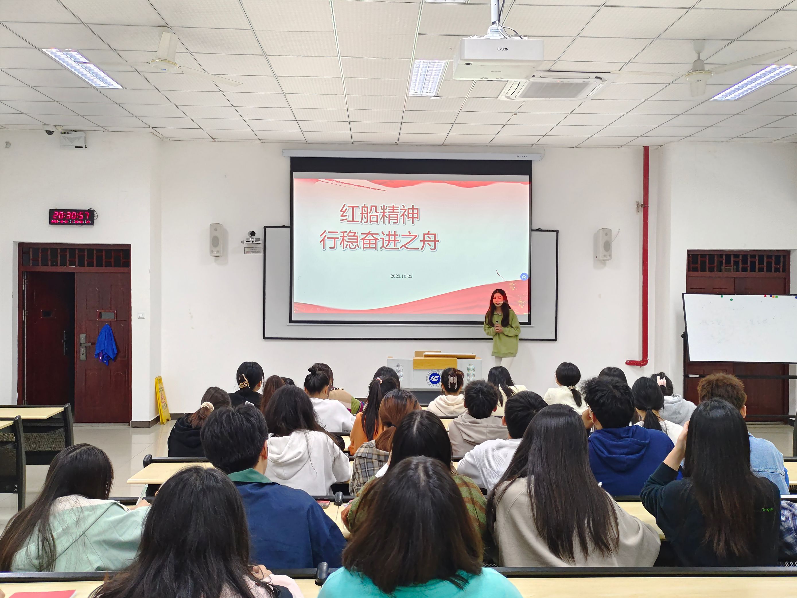(图/文 学生党教中心 敬维佳)为传承红船精神,弘扬伟大建党精神,筑牢学生党员理想信念之基,管理学院党总支于10月23日在第六教学楼开展“红船精神,行稳奋进之舟”主题学习活动。此次活动由学院学生党员实践教育分中心办公室负责人王璟萱主持,共计40人参加。