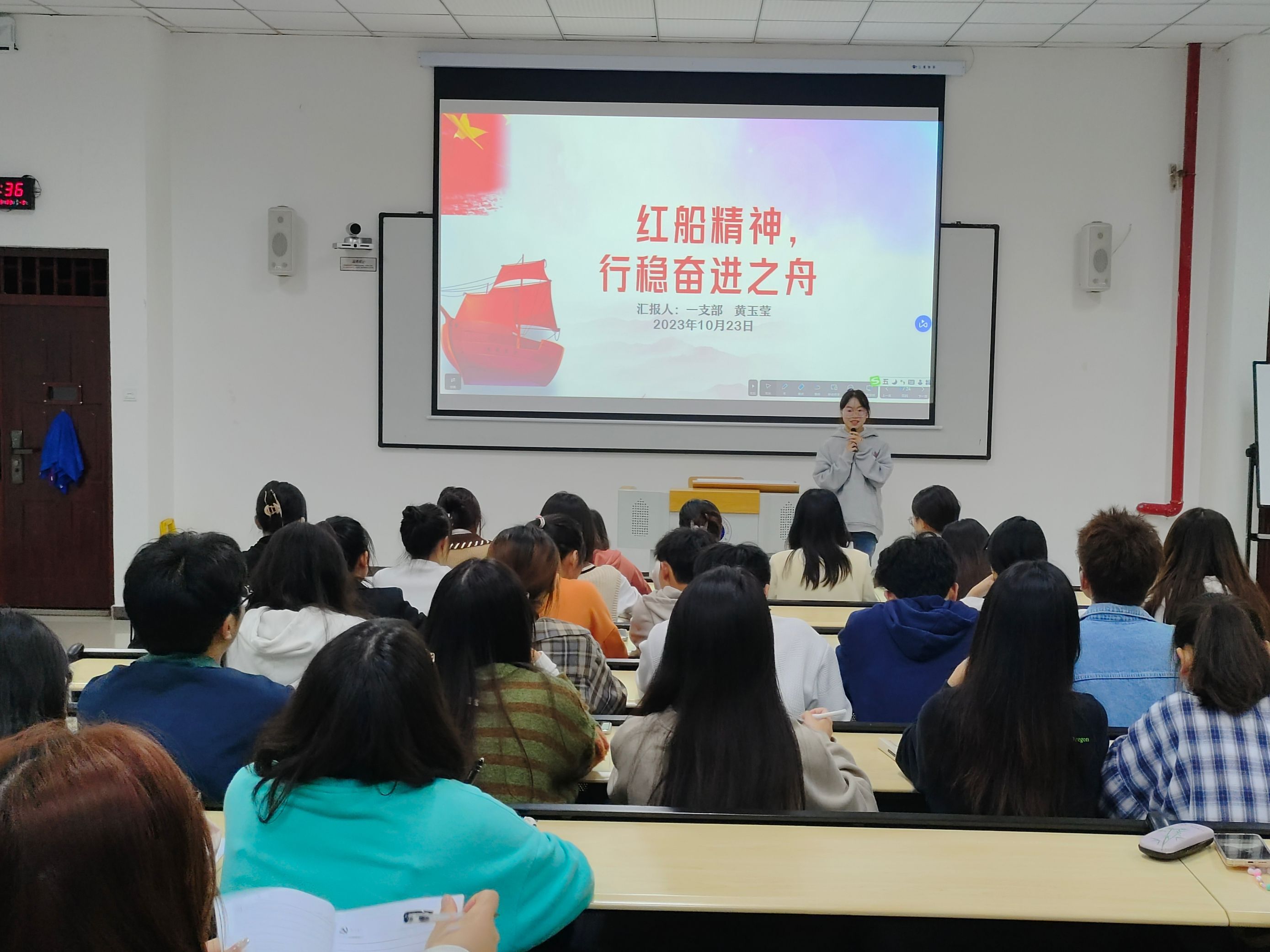 活动伊始,左容同学主要围绕红船精神的由来、内涵以及红船精神对党的重要意义三个方面进行讲述,让同学们感受到了共产党人开天辟地、敢为人先的磅礴精神力量以及红船精神对共产党人坚定理想信念、牢固精神支柱的重要意义。黄玉莹同学则主要从如何在新时代弘扬红船精神、如何在实践中继承和发扬红船精神两方面进行讲解,她号召同学们坚持和发扬红船精神,不断增强忧患意识,居安思危,用共产党人的胸襟和眼界观察世界、判断形势、艰苦创业、努力奋斗,以青春谱写新时代奋斗篇章。主题分享结束后,多位同学积极主动向大家分享了他们所关注的时事热点。