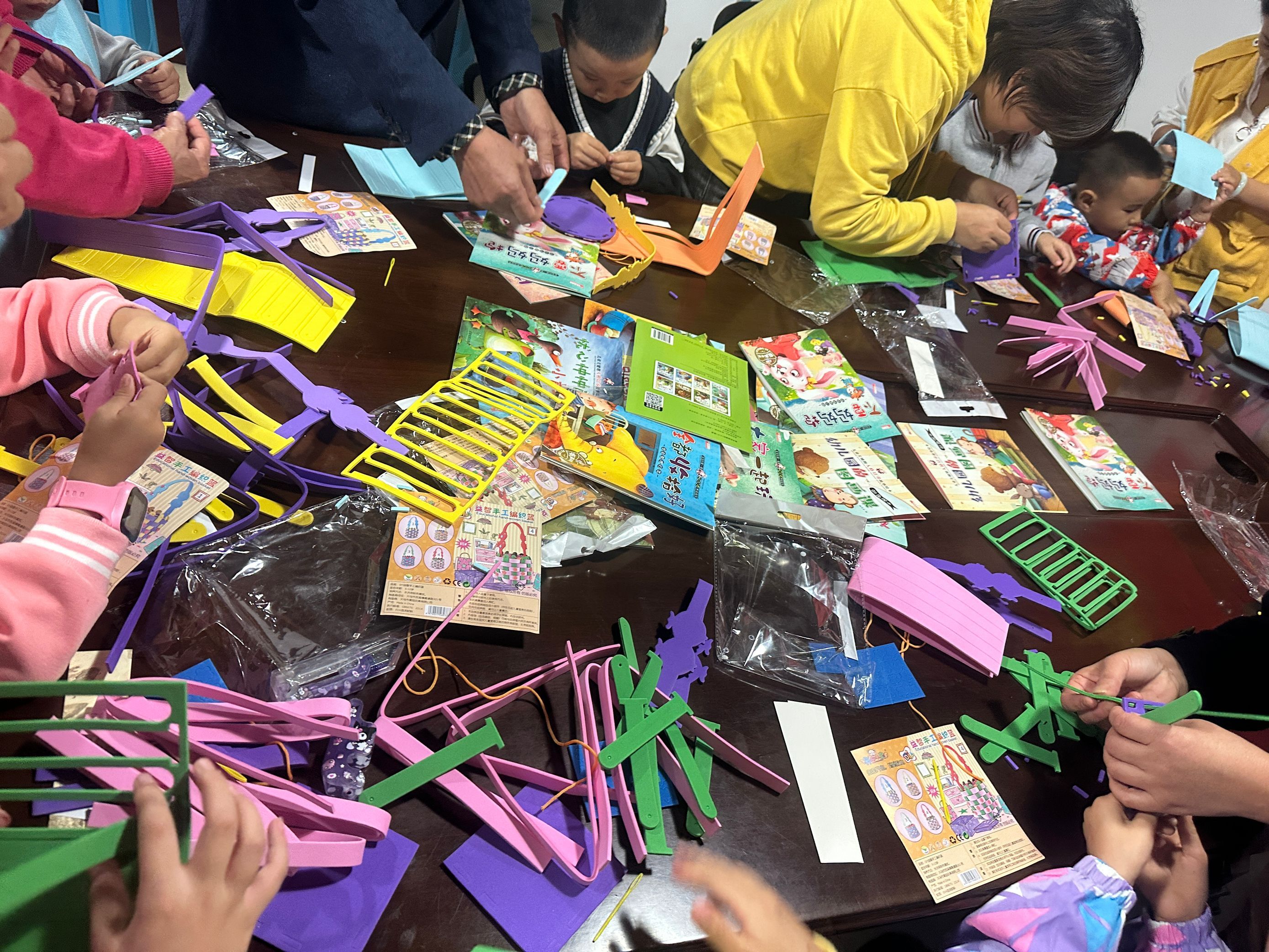 随后,志愿者们向社区少年儿童展示了手工花篮的制作材料,讲解了相关传统手工文化的发展历程,并依次分发本次手工制作材料,按照步骤耐心地指导小朋友们动手制作花篮。小朋友们在家长的陪伴和志愿者的帮助下,用五颜六色的材料编制花篮,用自己喜欢的花样进行装饰,认真打造着属于自己的作品。时间悄然流逝,一个个造型别致、充满童趣的花篮呈现在眼前。小朋友们纷纷展示介绍自己的作品并拍照留念,兴奋地期待活动结束后,将制作好的手工作品赠送给家中长辈,以表孝敬、感恩之情。