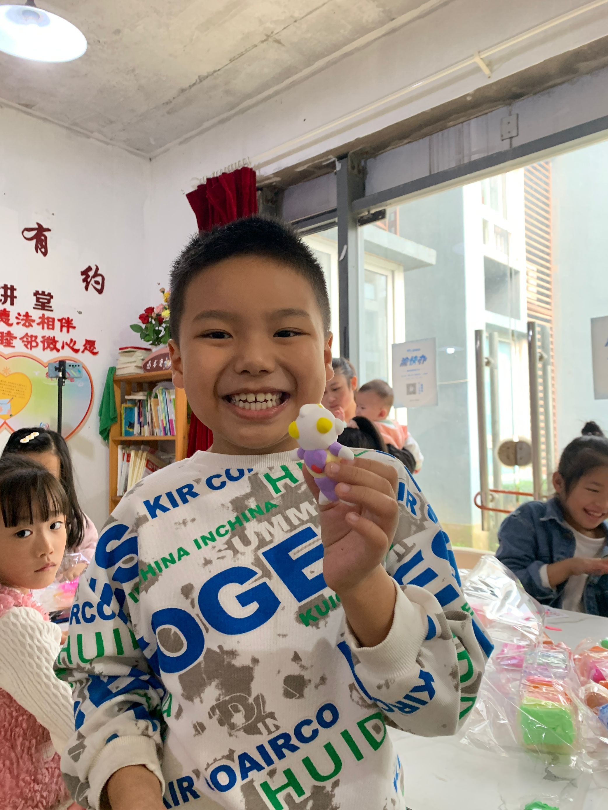 活动伊始,志愿者们向少年儿童们讲述了中国传统民间艺术——泥塑艺术的历史源流和艺术特点,让小朋友们对民间传统泥塑艺术有了基础的认识,同时也引发了小朋友们对这次活动的好奇。在志愿者们的细心帮助和家长们的陪伴下,小朋友们发挥自己的想象力和创造力,将手中的粘土制作成了一个个可爱的形象。每一个独特的形象,都透露出小朋友们独特的创意和对传统泥塑艺术的喜爱。活动结束后,小朋友们都兴奋地捧着自己的作品,向志愿者和家长们展示介绍,言语间充满着欢乐与自豪。