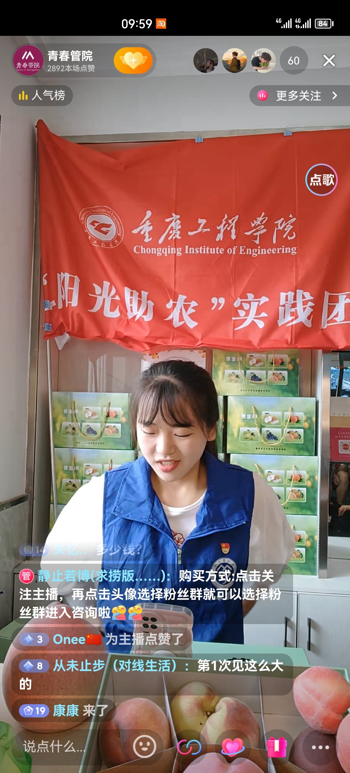 管理学院按照巴南区“党建引领·乡村振兴”行动方案及学校“一学院一街镇”工作部署,深入重庆市巴南区东温泉镇开展乡村振兴结对共建工作。陈子阳作为学生实践团队负责人,积极践行青年学子担当,在乡村振兴事业中,他带领“阳光助农”实践团深入黄金林村一线,依托管理学院电子商务、市场营销等专业优势,谋划开展农产品电商直播、品牌设计、产品营销等活动。其中在暑期三下乡期间,通过电商直播为当地带来5万余元收益,同时完成7000余斤白花桃、蜂糖李、翠冠梨的采摘、分拣、装箱工作,及时让新鲜水果进入运输环节,减少了生产损耗,提高村集体收益。此外,他还带领团队成员向留守儿童开展科学知识科普与宣讲活动。
