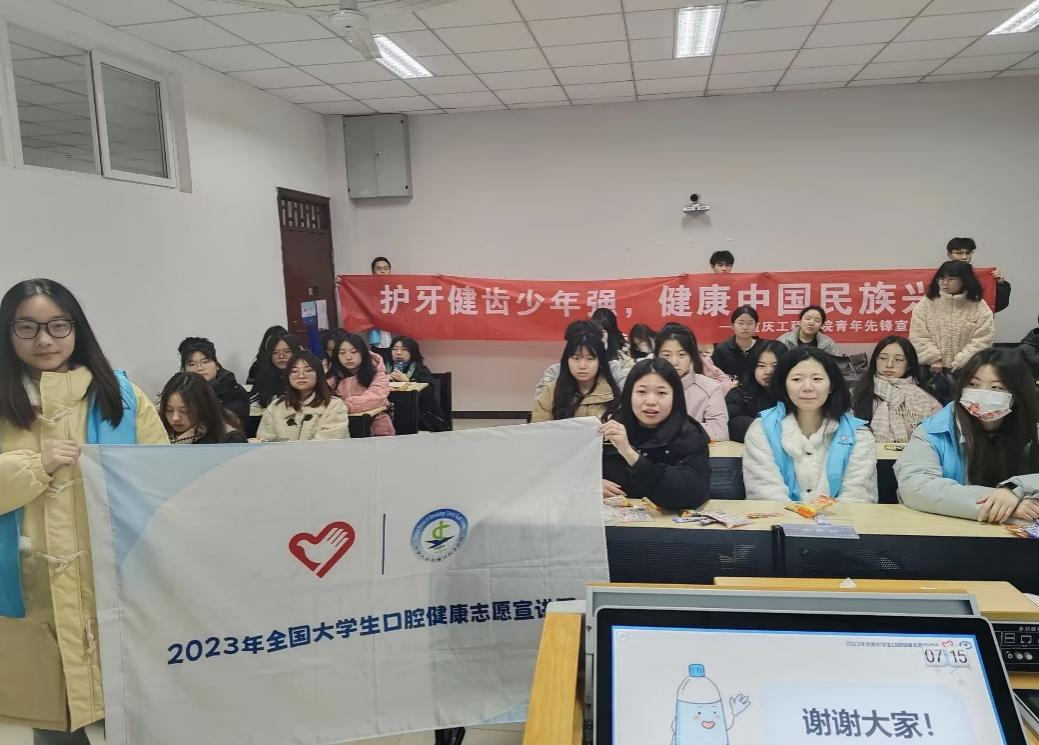 (图/文 学生党教中心 方蓓蕾)为提升同学们的口腔健康意识和保健能力,推动青少年口腔健康建设,营造良好的口腔健康知识学习氛围,重庆工程学院青年先锋宣讲团于12月18日在第六教学楼开展“守护口腔,‘齿’刻开始”班级宣讲活动。本次活动参与人员为青年先锋宣讲团全体成员及22电商2班全体同学,共计45人。