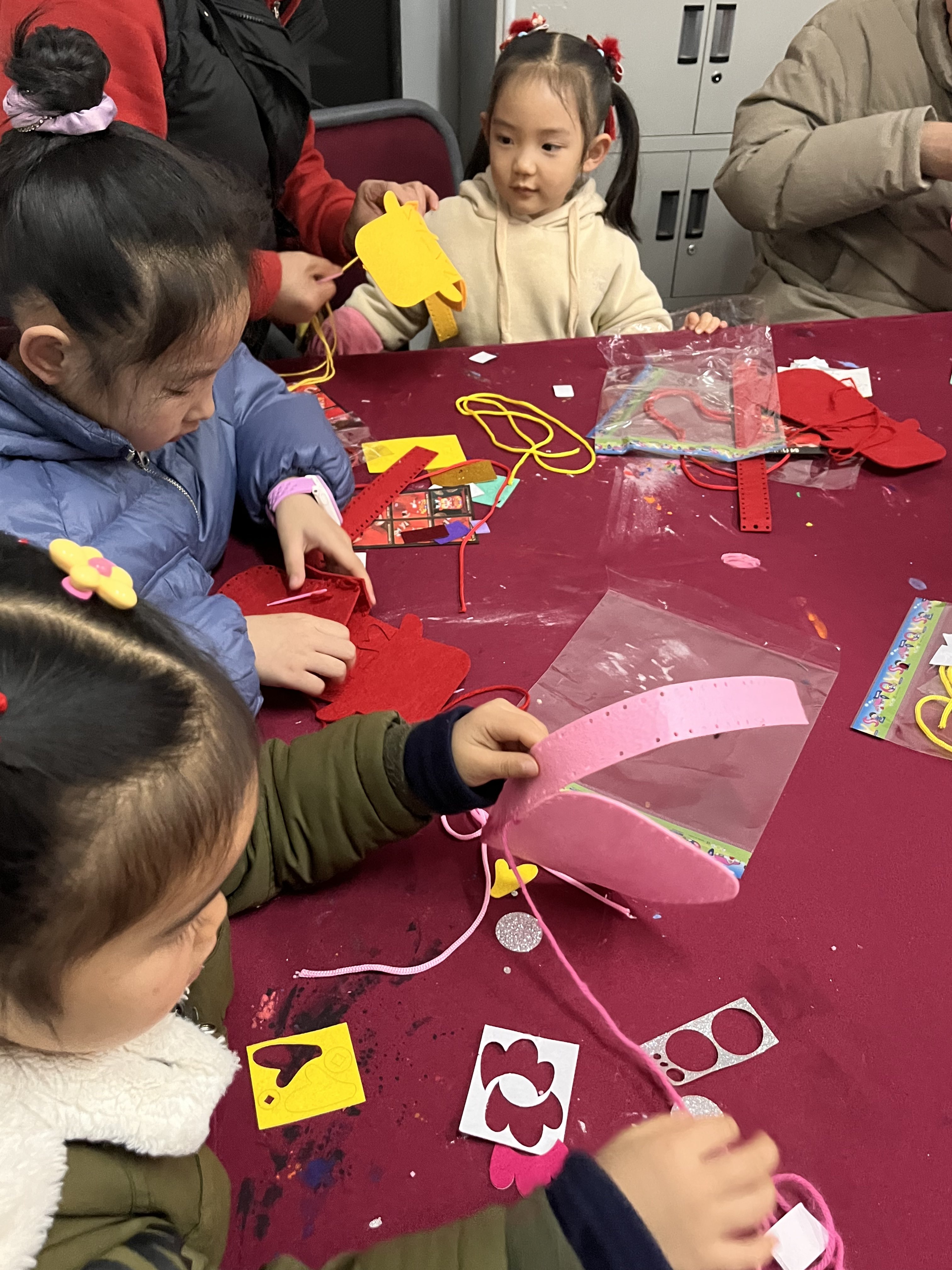 接着,开展了“龙年挎包DIY”活动。志愿者分发材料,并向小朋友和家长们讲解挎包的制作过程并按步骤细心教学。在志愿者和家长们的帮助下,小朋友们熟悉了过程,制作出了属于自己的龙年挎包。创作结束后,小朋友们互相展示自己的作品,分享快乐,在过程中结交新朋友,提升动手能力,体验不同的感受。最后,志愿者和小朋友们合影留念,记录下这美好一刻。