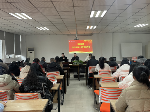 (文/图 办公室 周黎)2024年2月23日,管理学院在3教602召开2023-2024学年2学期第1次全院工作大会,学院院领导以及全体教职员工参加会议。