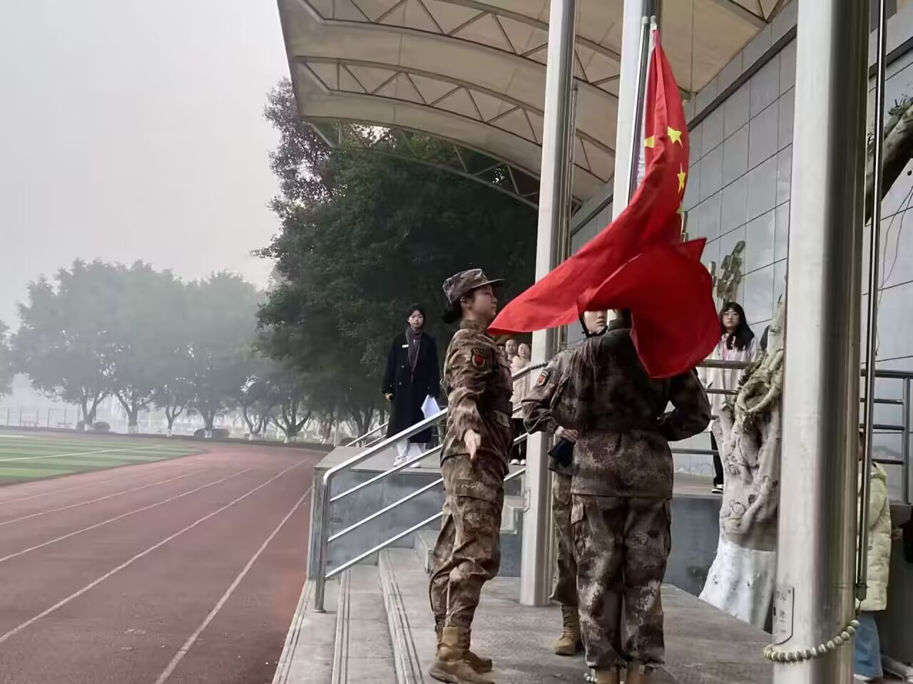 为了进一步弘扬雷锋精神,激发学生的爱国情怀和社会责任感。管理学院于2024年3月11日早7:20在足球场举行2023-2024学年第二学期第一次升旗仪式。管理学院党总支书记尚伟,学院团委书记、学生科科长王燕楠,分团委副书记李剑斌,辅导员杨丽颖、罗雪,以及22级管理学院全体学生参与本次升旗仪式。